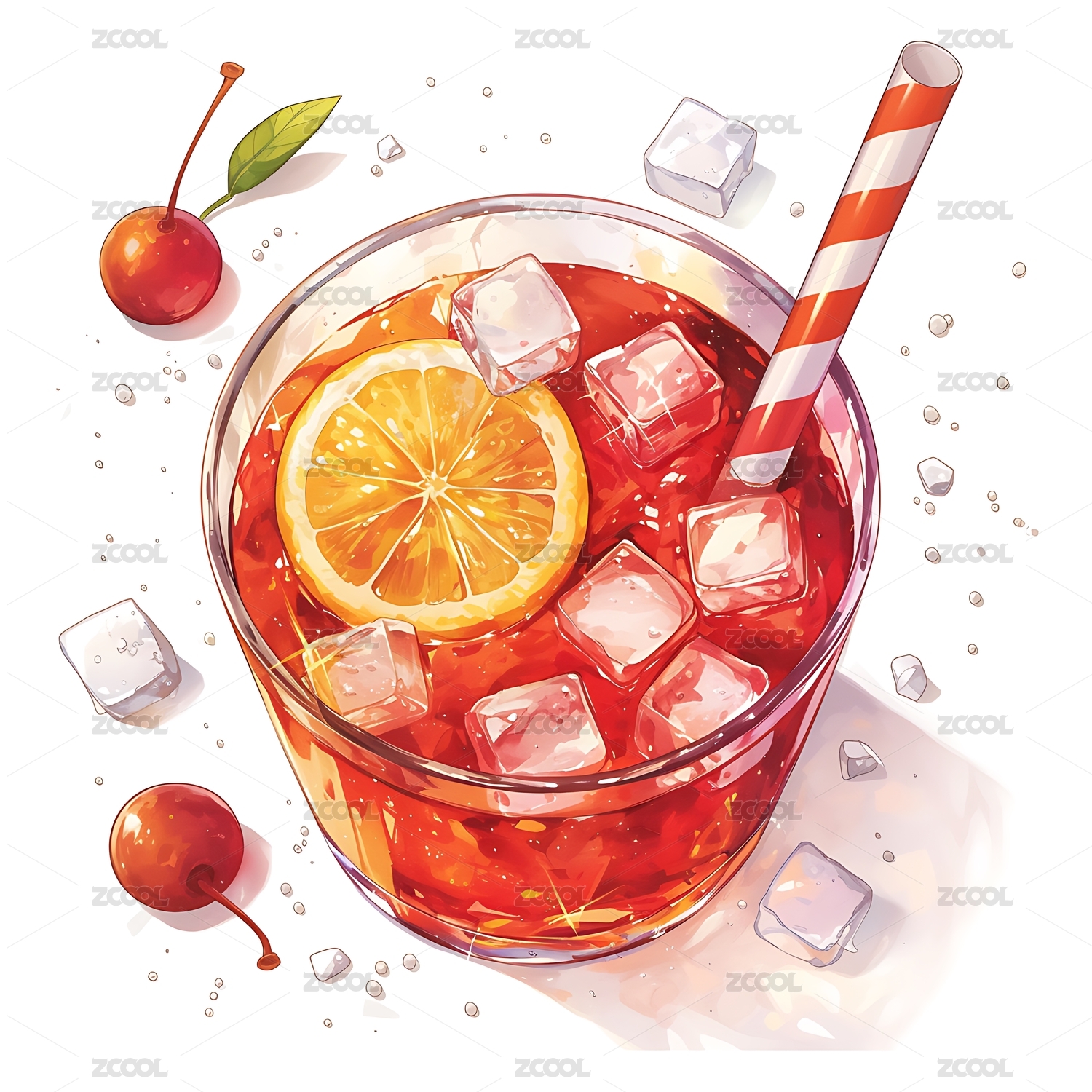 饮料,饮品,夏日,奶茶,插画,红色,冰饮,西柚,绿叶,吸管