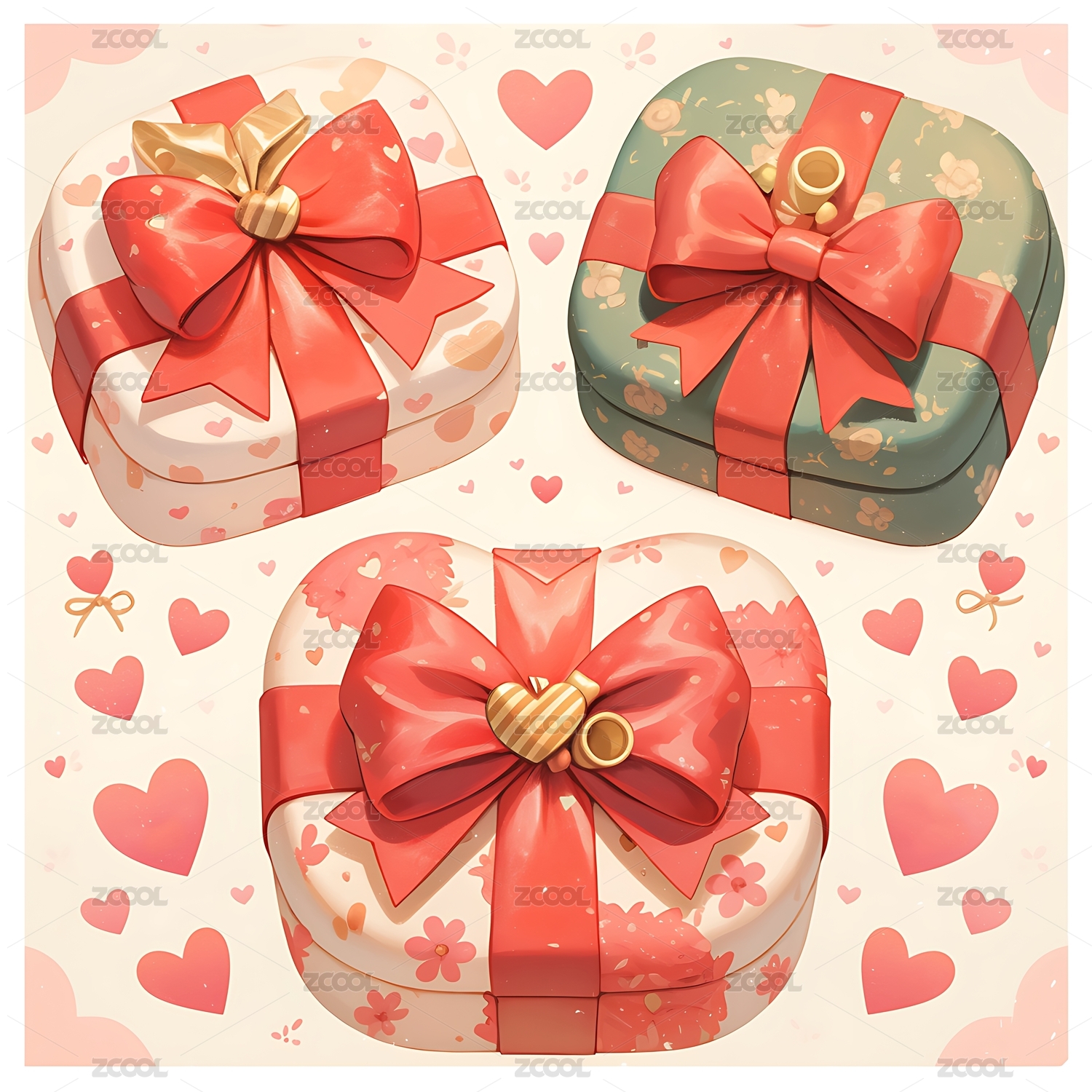 情人节,礼盒,礼物,爱心,节日,浪漫,插画,蝴蝶结,手绘,艺术