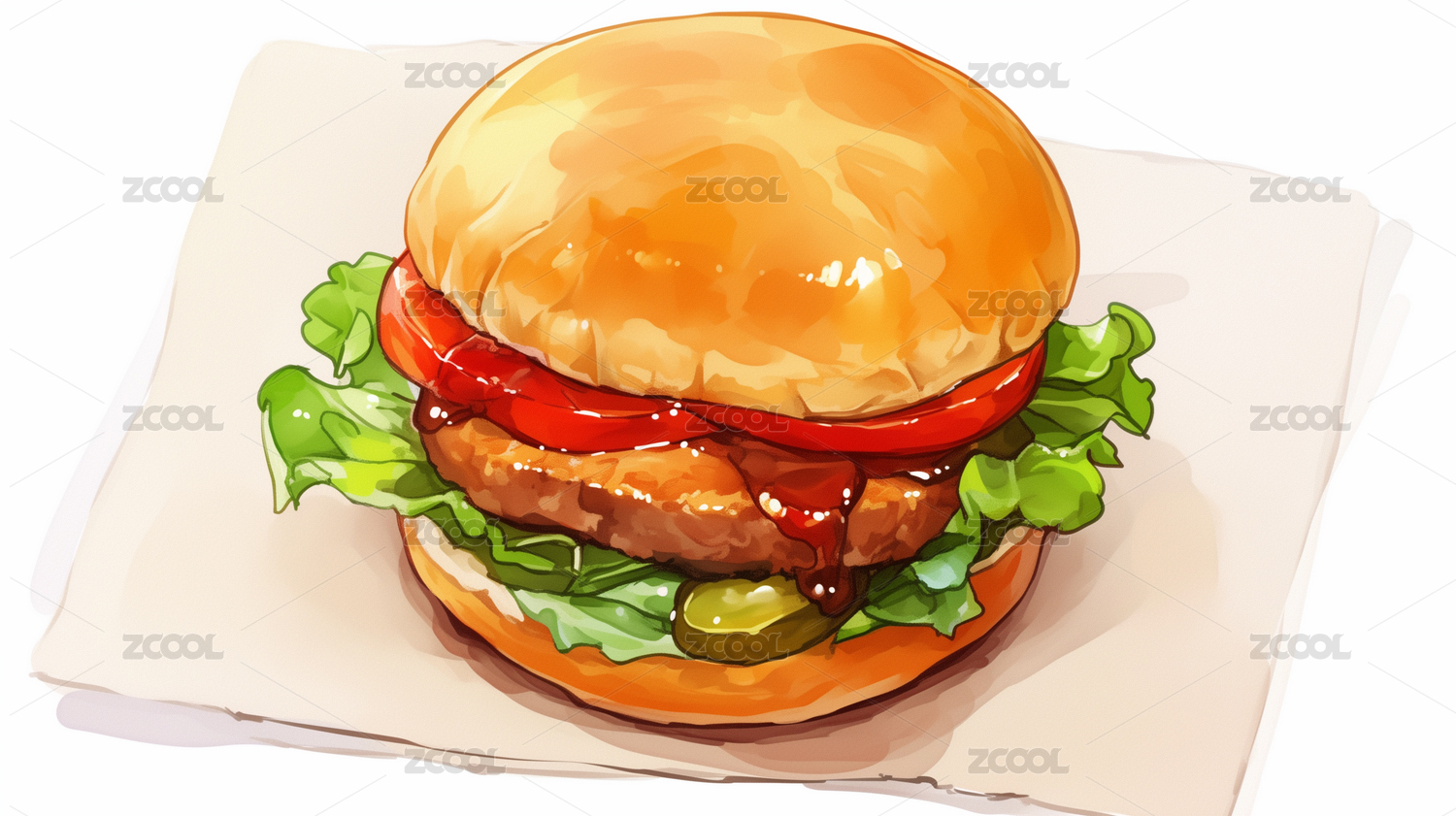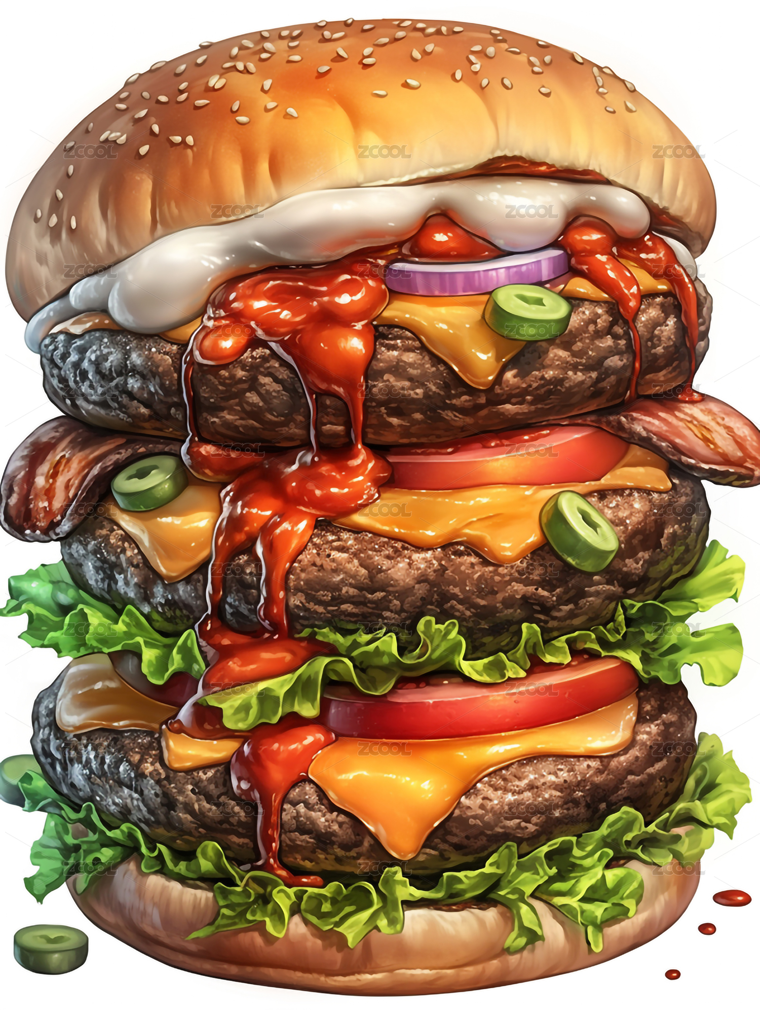 汉堡,食物,西餐,插画,双层肉饼,美食,快餐,美味,芝士,番茄