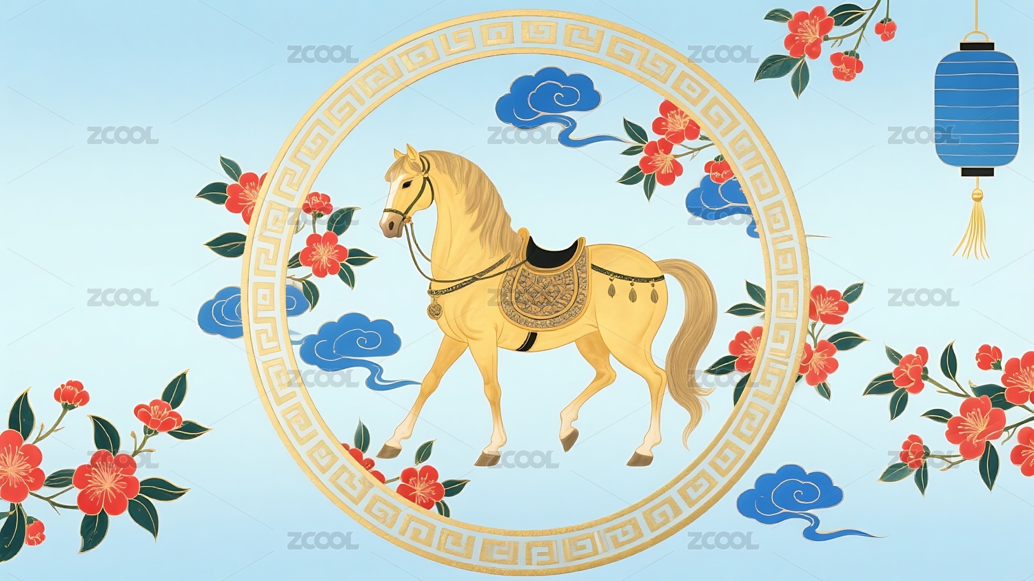 花纹,灯笼穗,花朵,动物,花卉,植物,装饰画,灯笼,马,金色