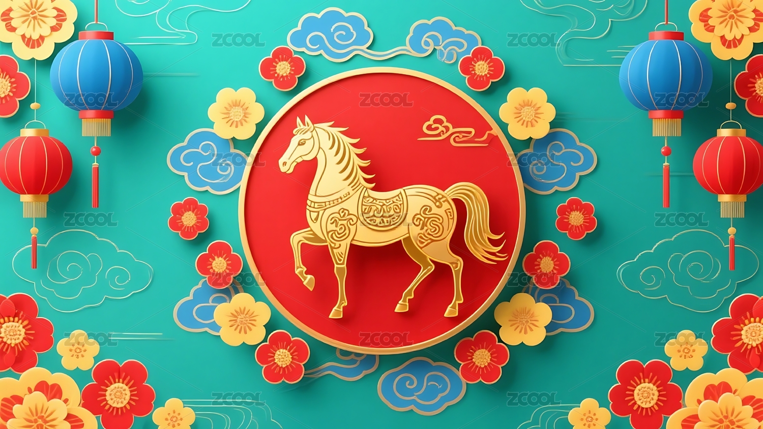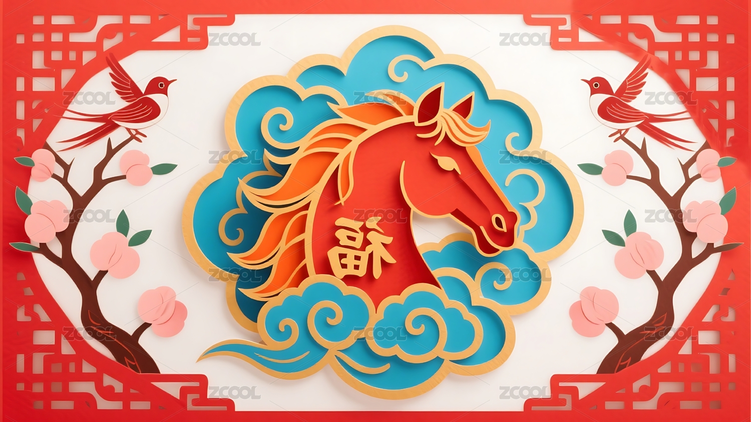 中式,花,红色,装饰,设计,艺术,文化,传统,风格,马