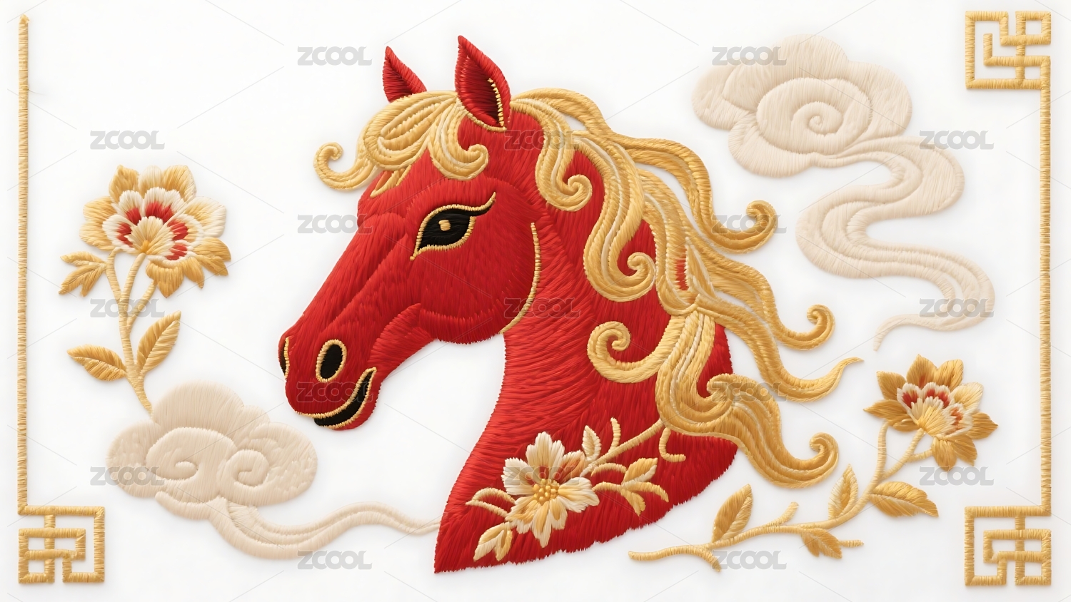 红色,装饰,设计,艺术,文化,传统,风格,马,云,图案