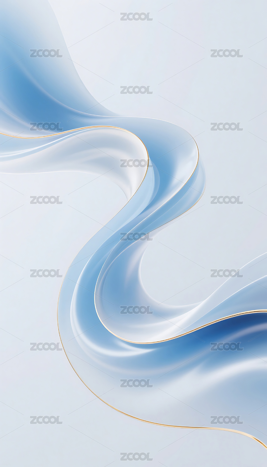 纯净蓝白金边渐变流体线条波浪背景