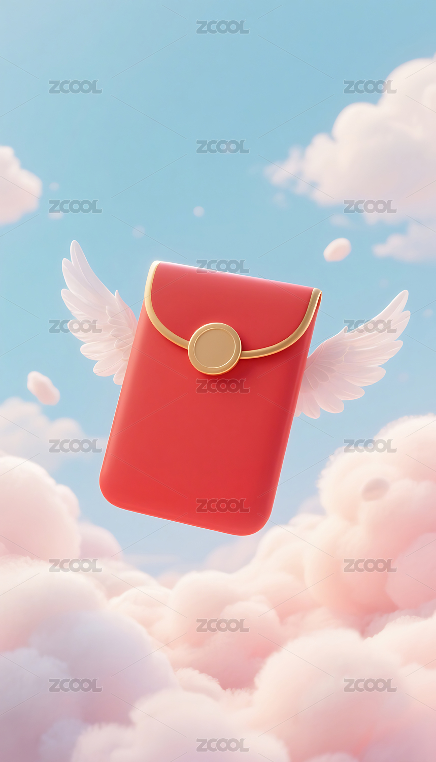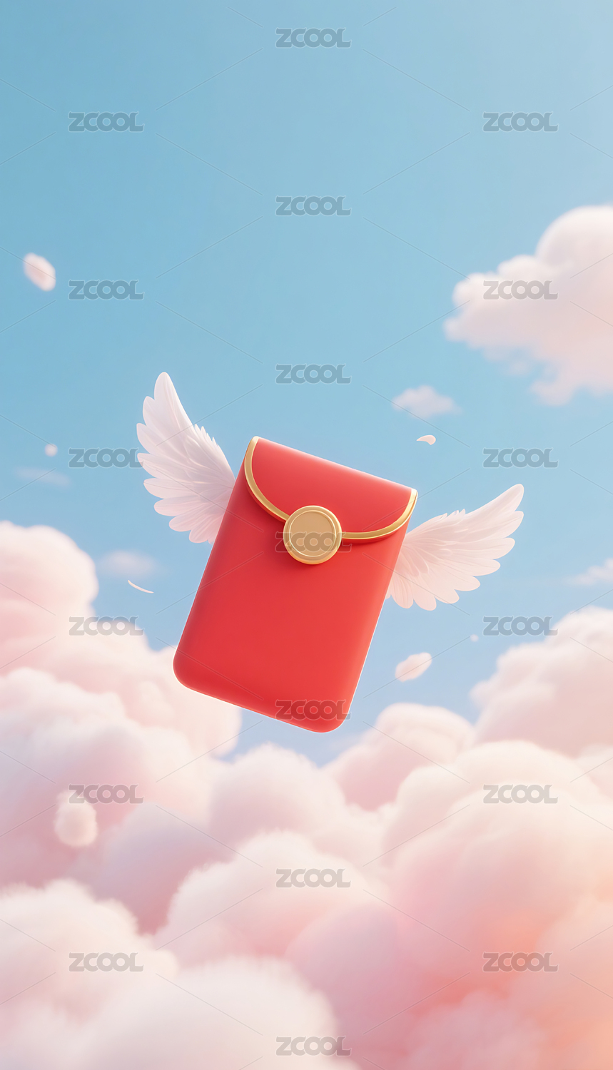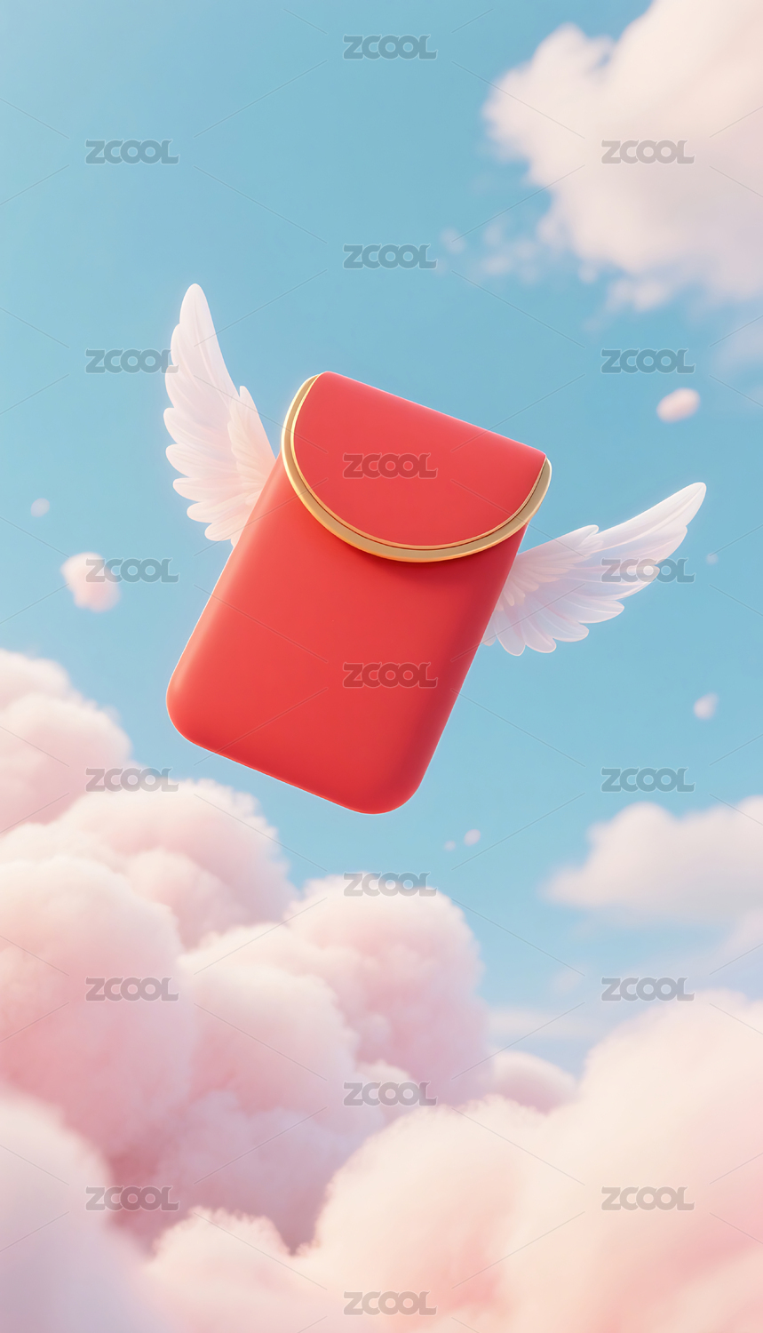 3D,模型,红包,翅膀,云朵,电商,促销,素材,元素