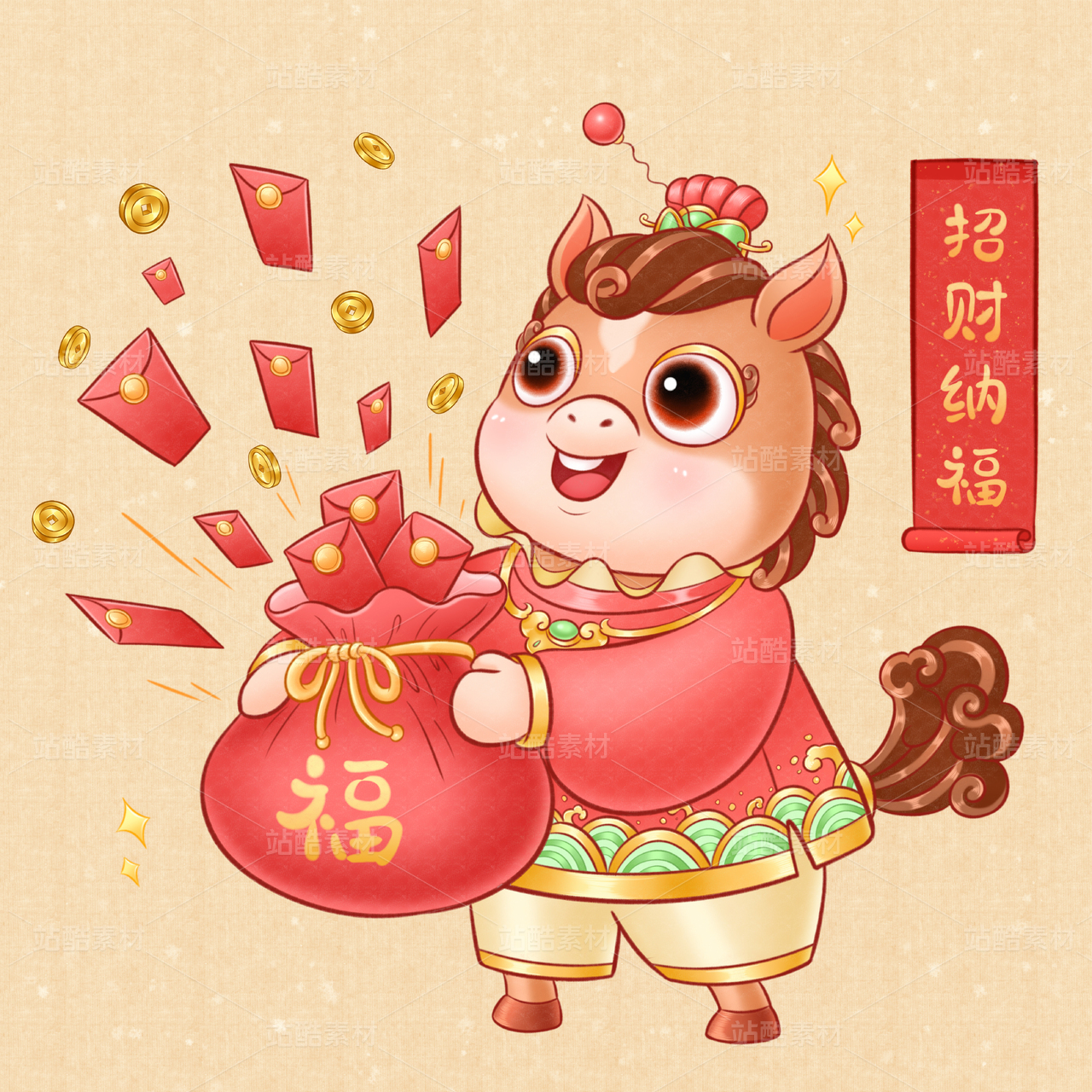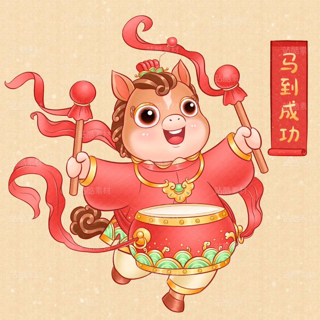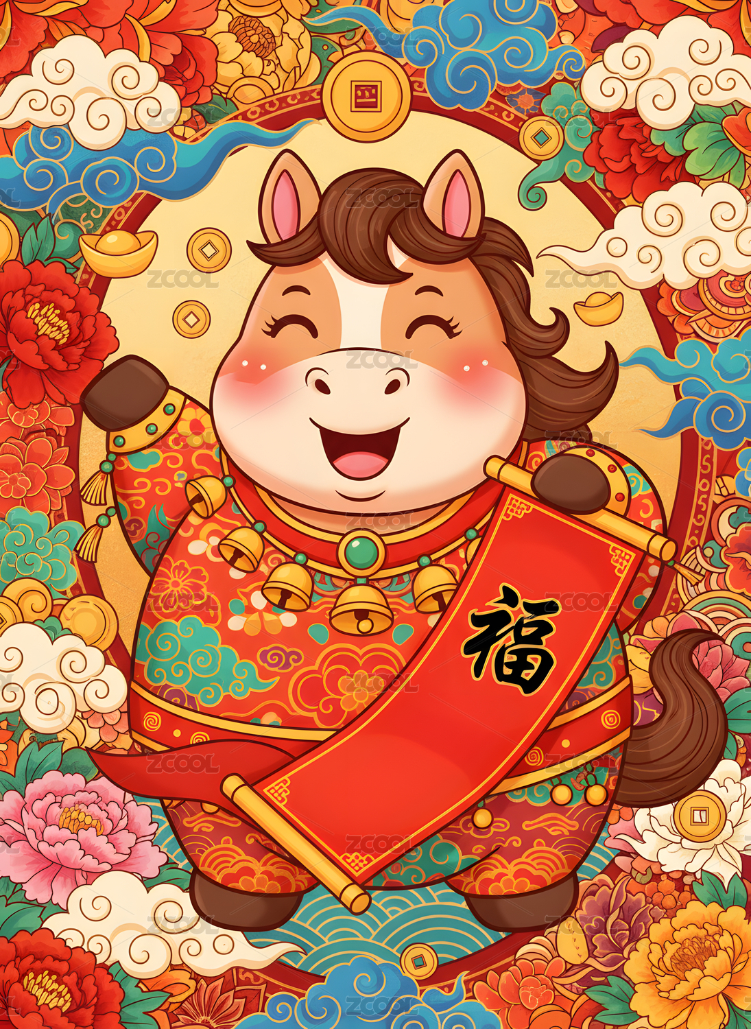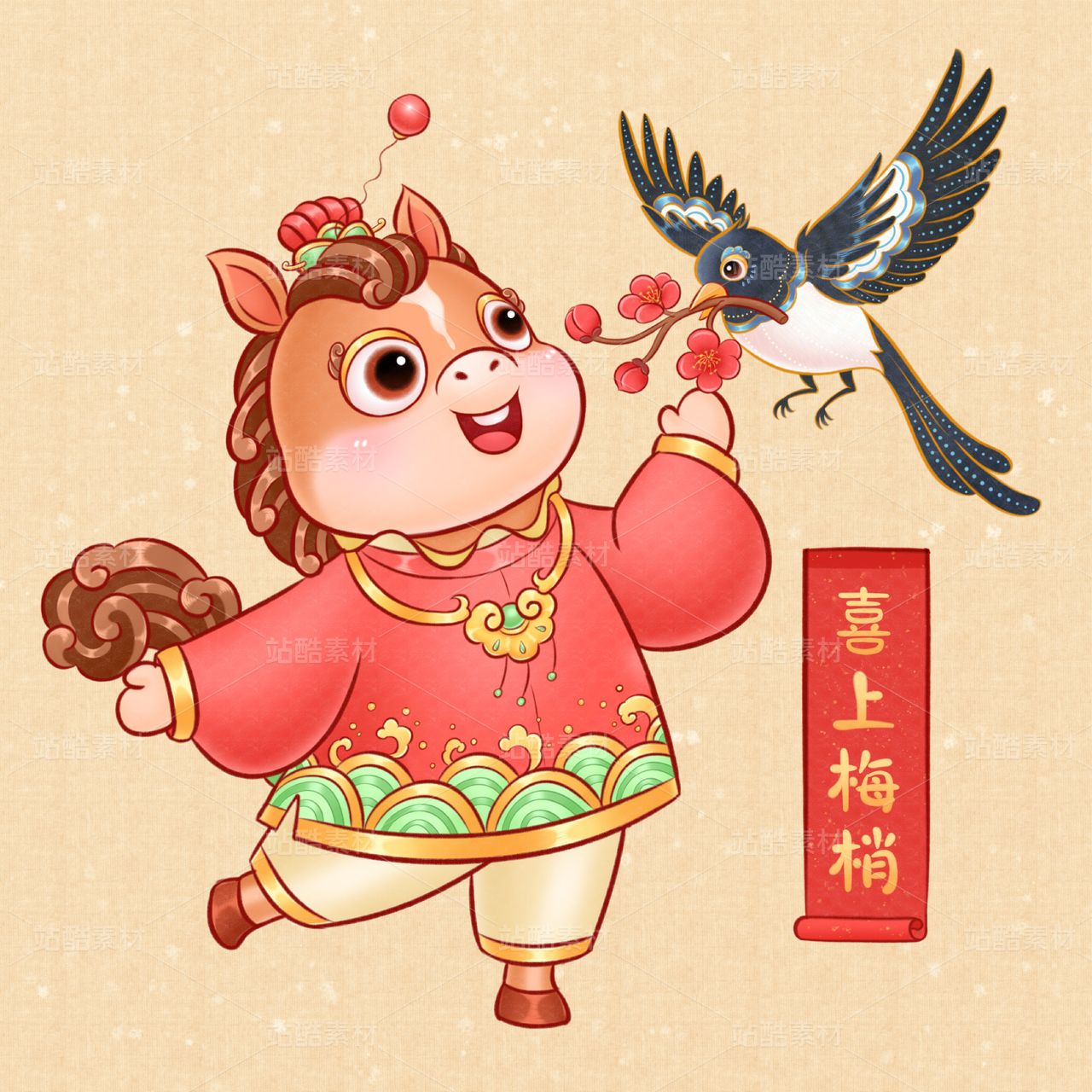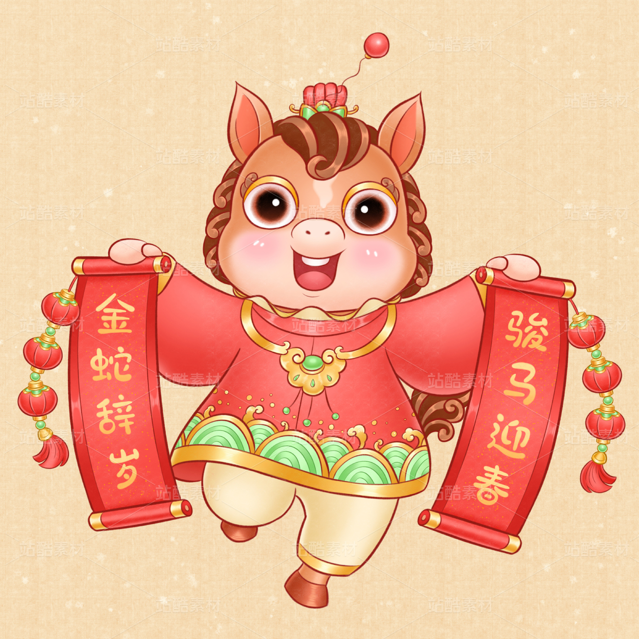 马年,插画,马,吉祥物,春节,小马,年画,中国风,卡通,对联,新春,金蛇辞岁,骏马迎春,祝福