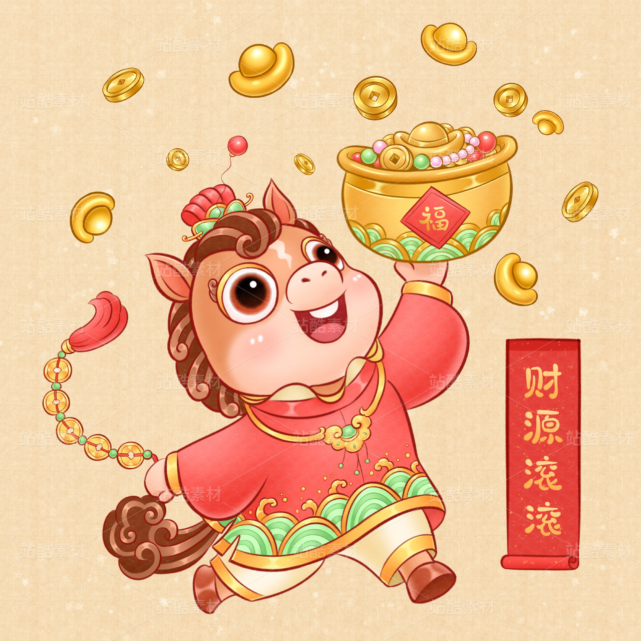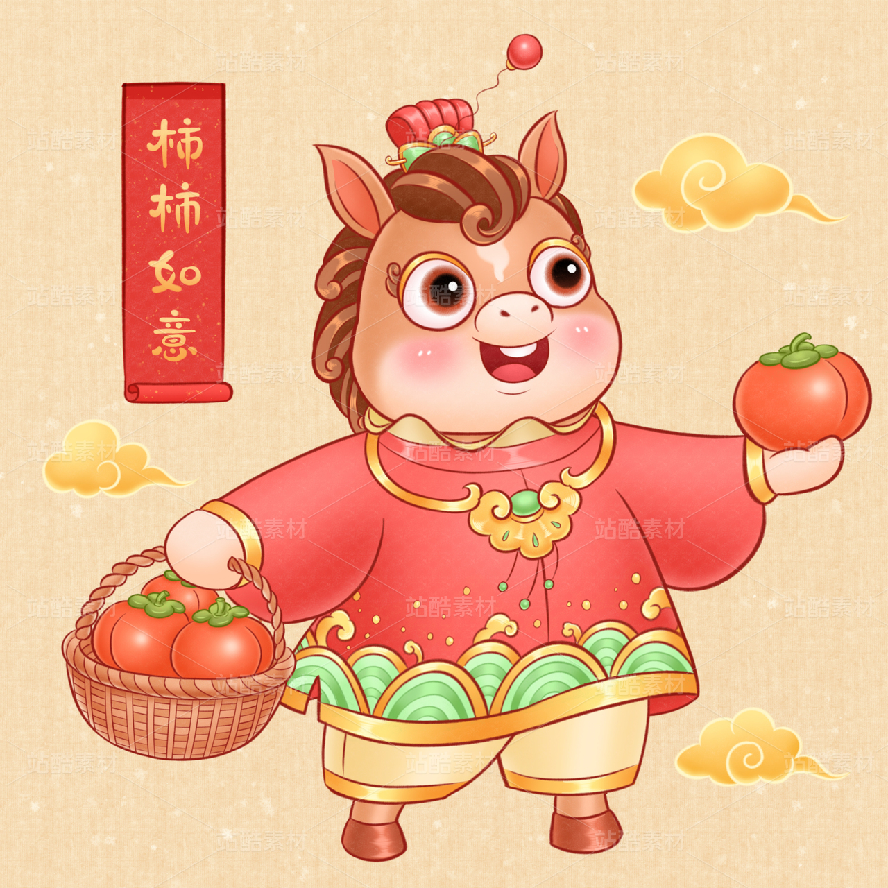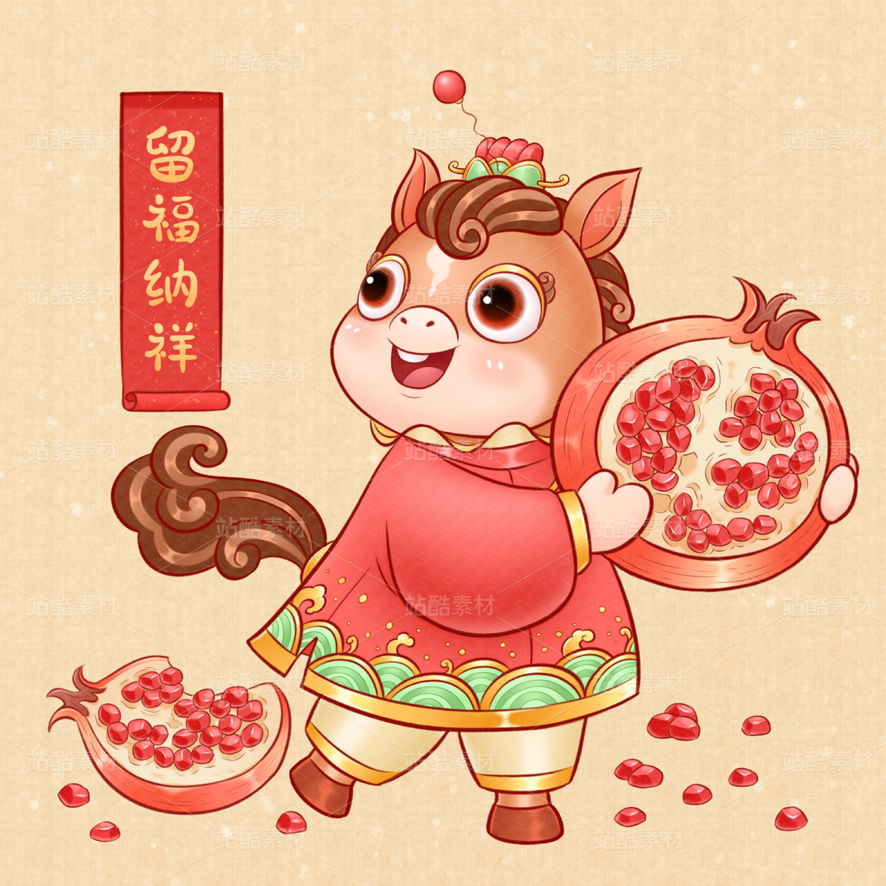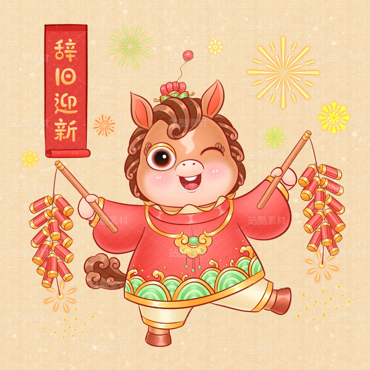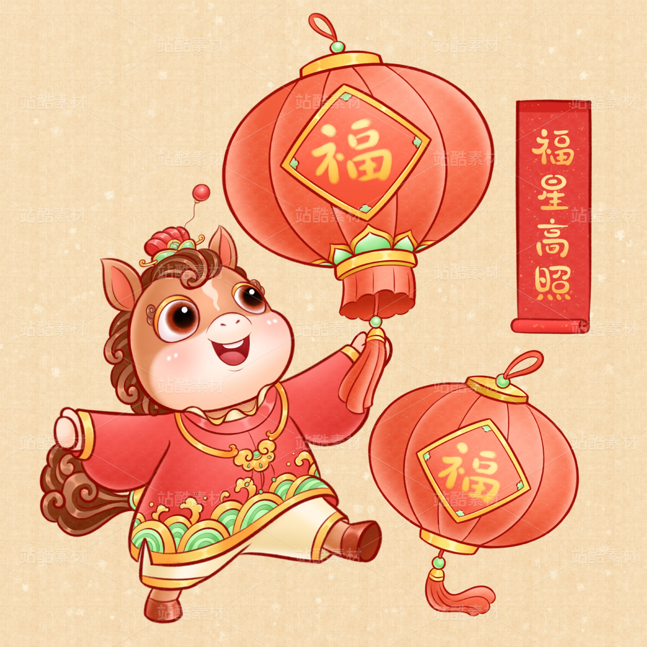 马年,插画,马,吉祥物,春节,小马,年画,中国风,卡通,对联,新春,金蛇辞岁,骏马迎春,祝福