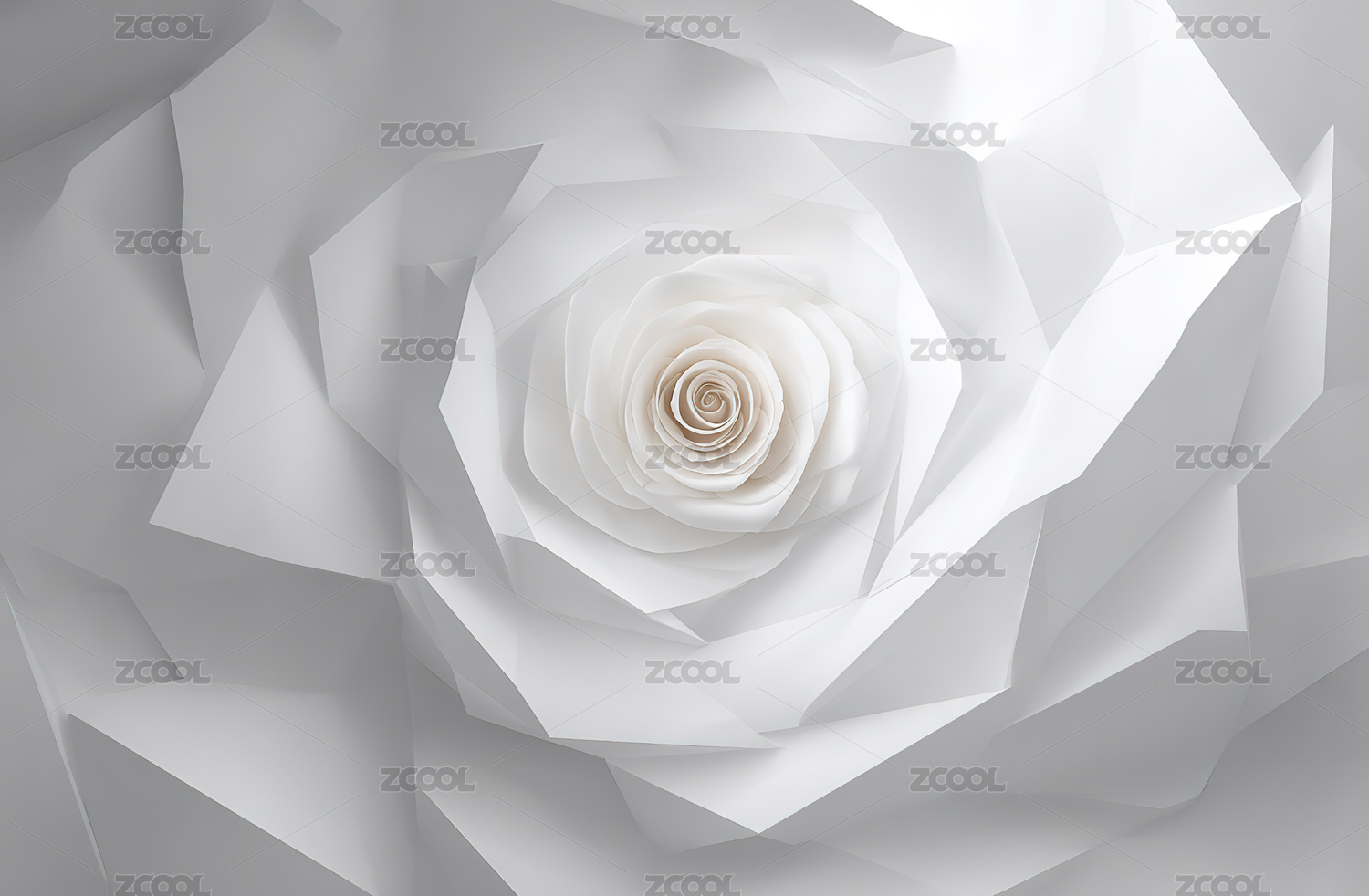 纯白色纸雕玫瑰花簇拥简约艺术