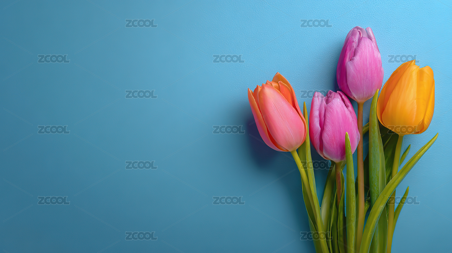 纯色背景上的郁金香,感恩节母亲节情人节