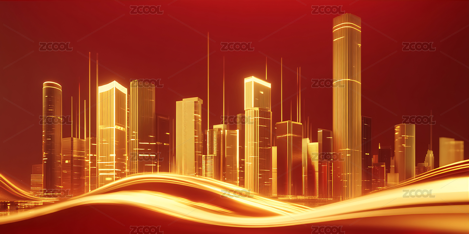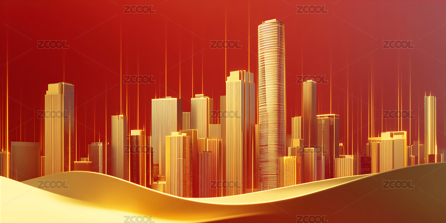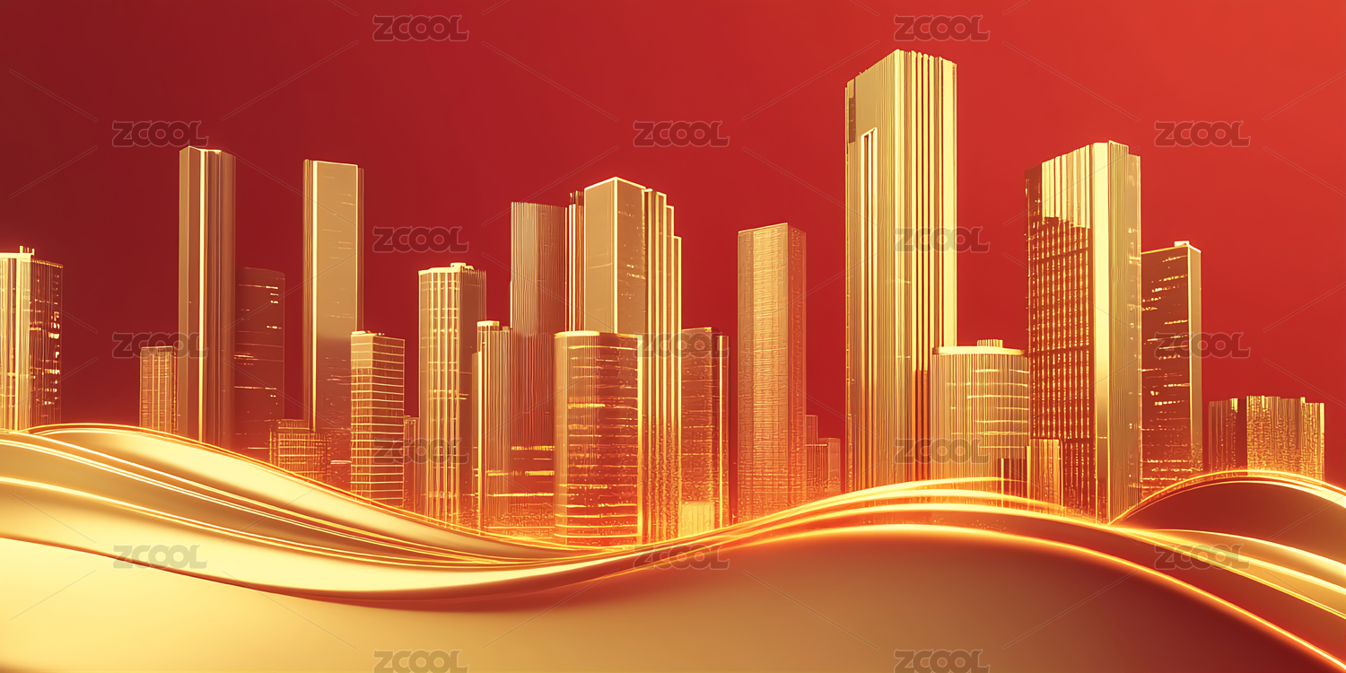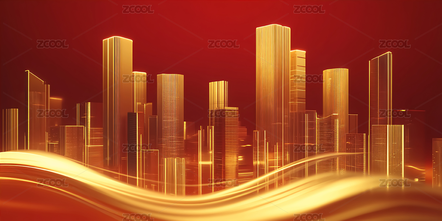 红色,背景,金色,建筑,摩天大厦,城市,天际线,商务,金融,党建