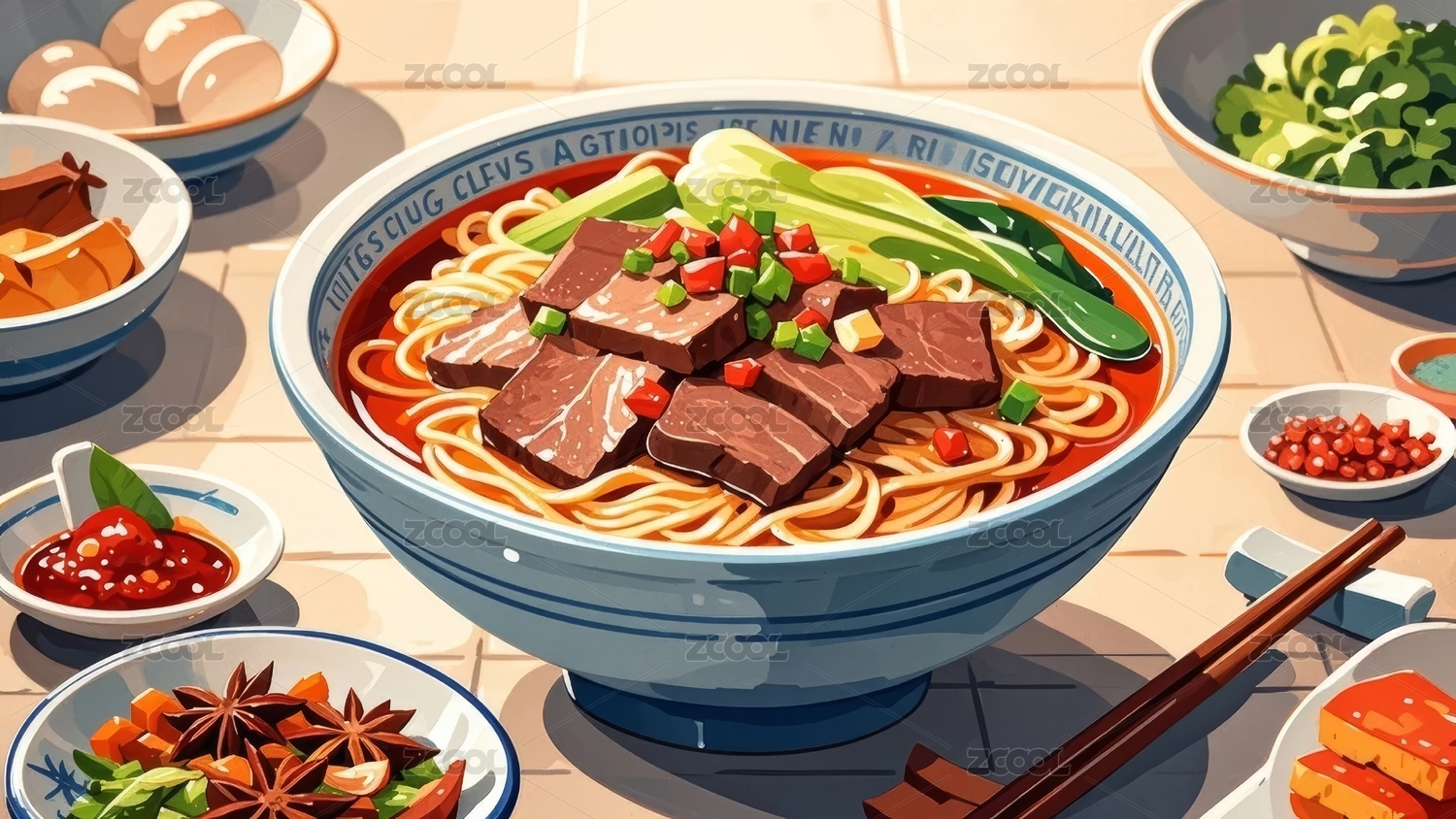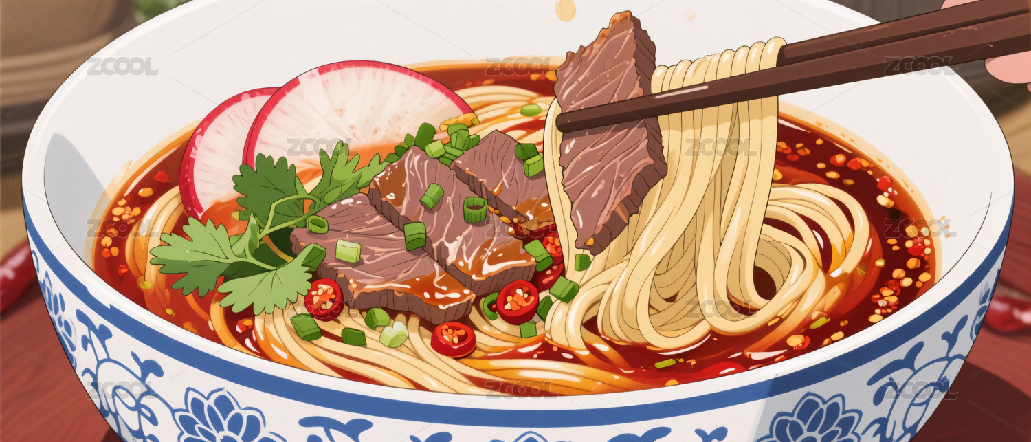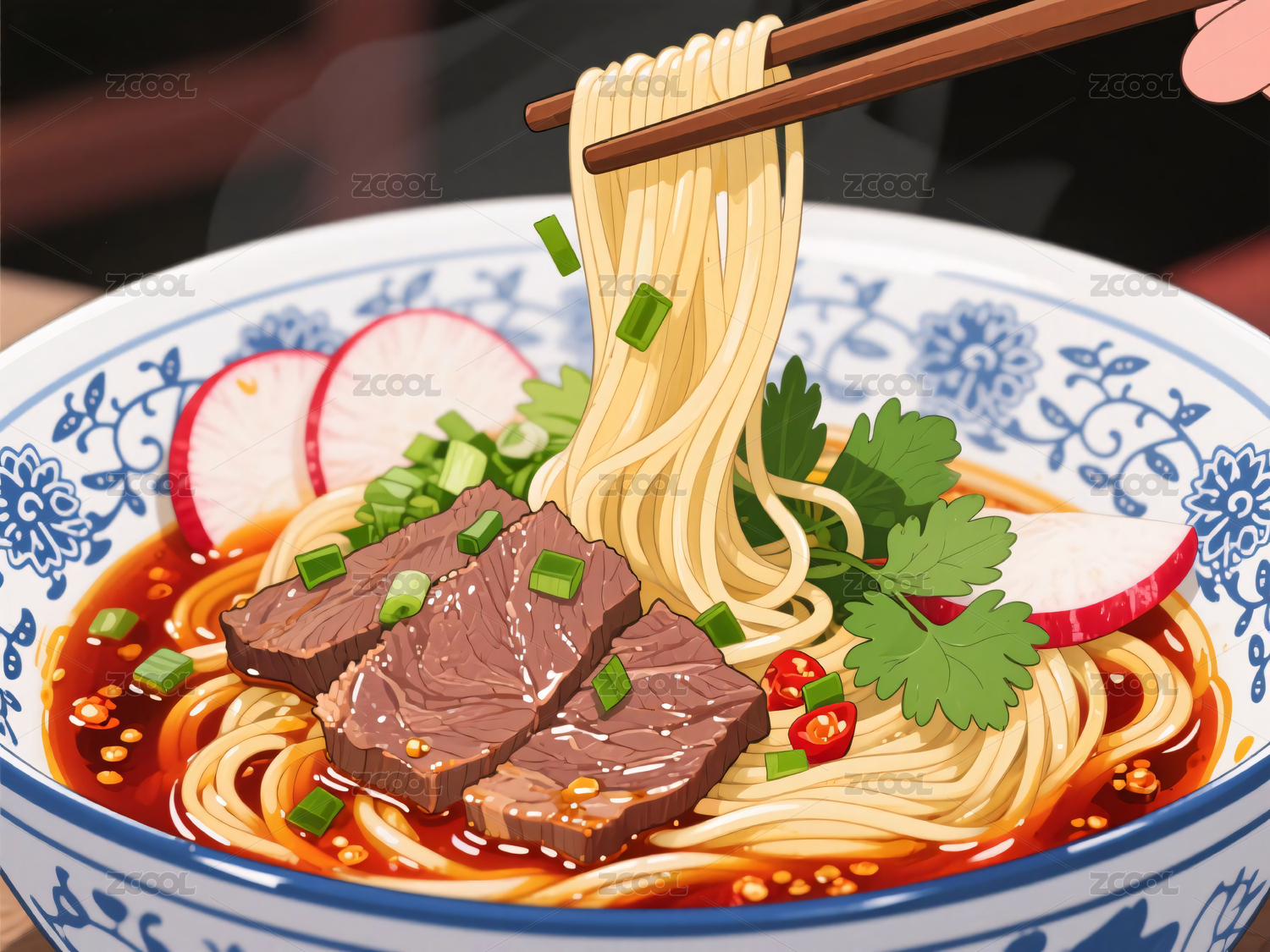 兰州拉面碗中的清澈牛肉汤与筋道面条