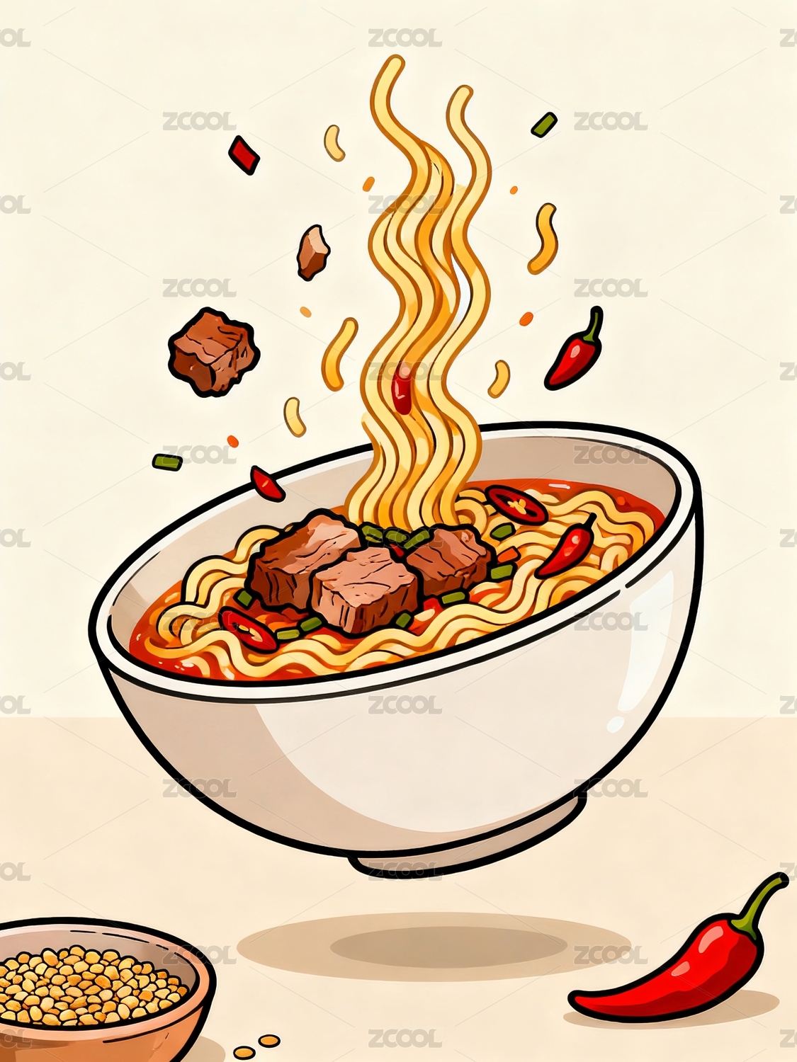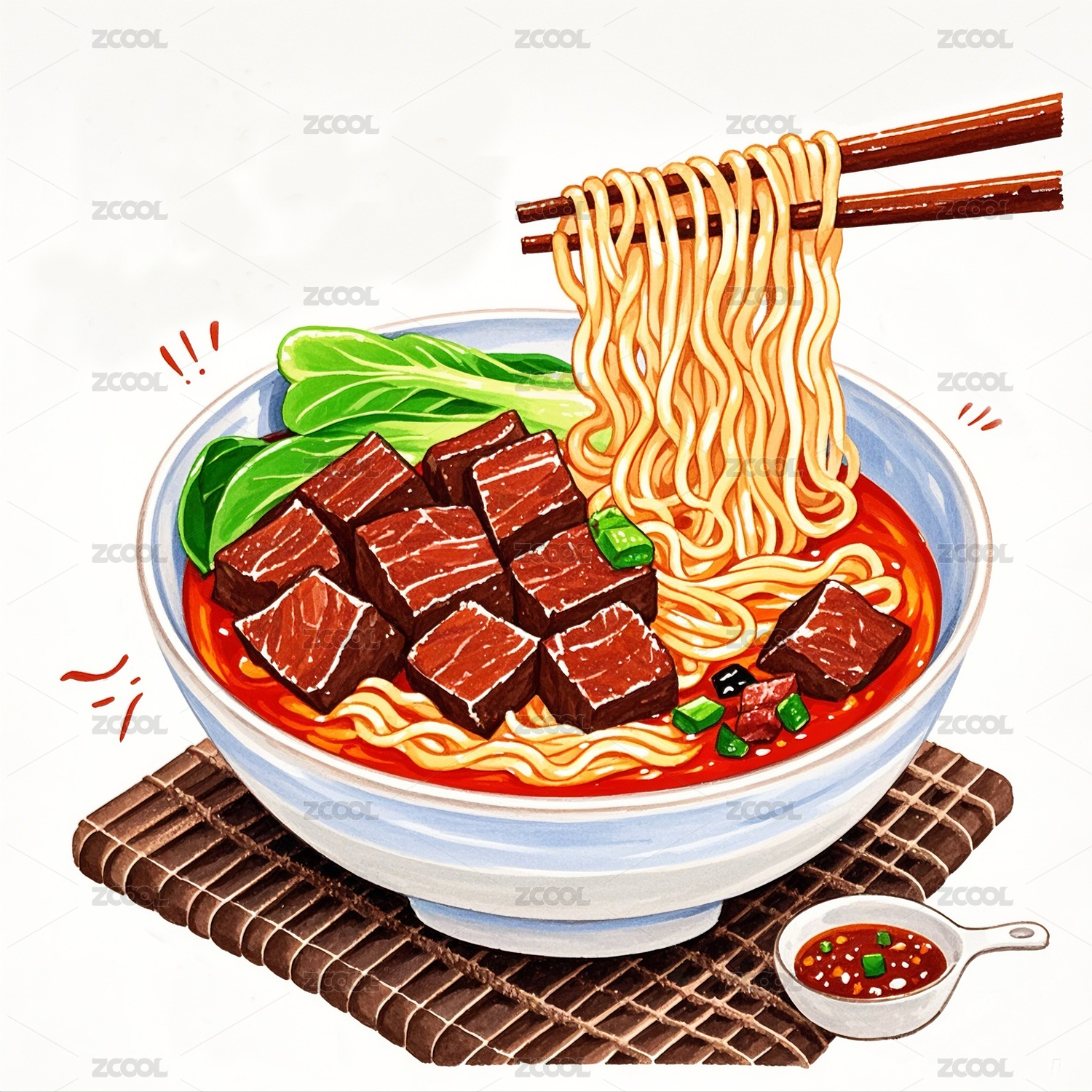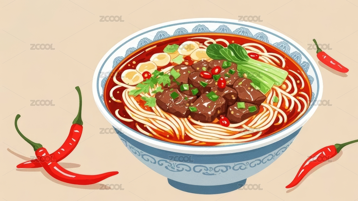 兰州拉面碗中的清澈牛肉汤与筋道面条