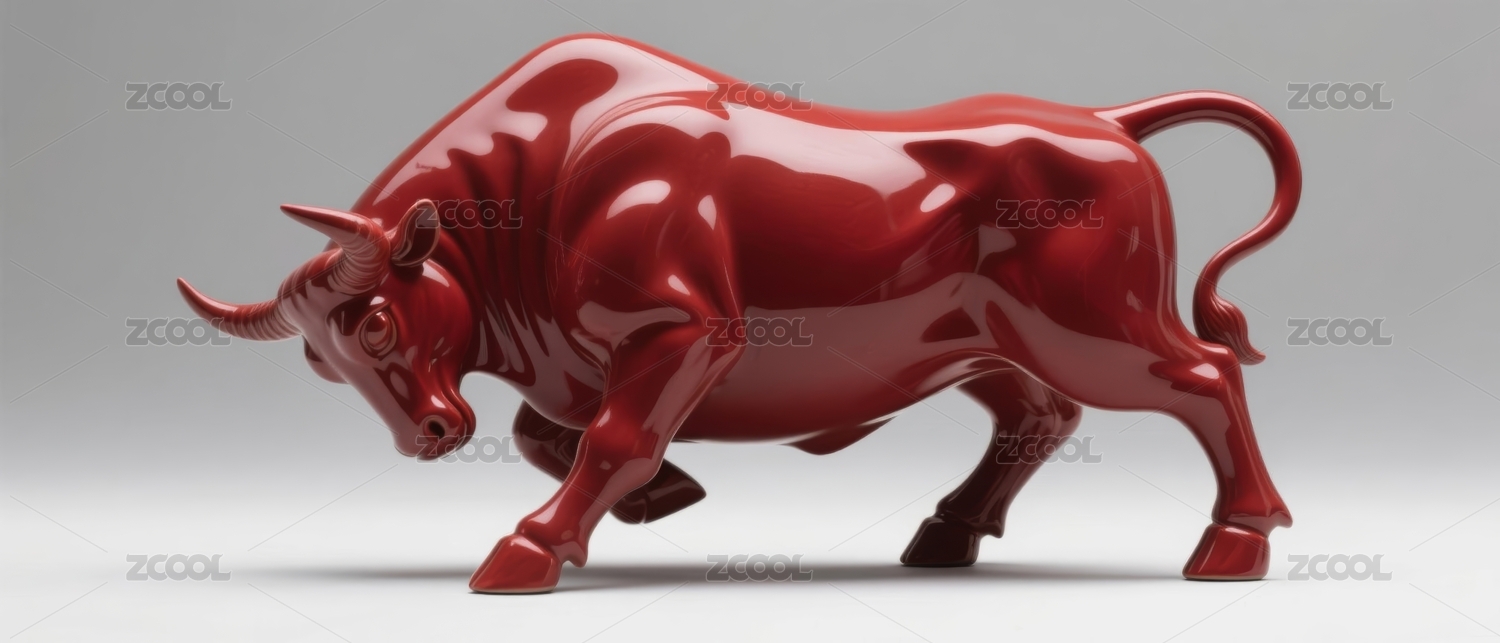 红公牛雕塑艺术场景