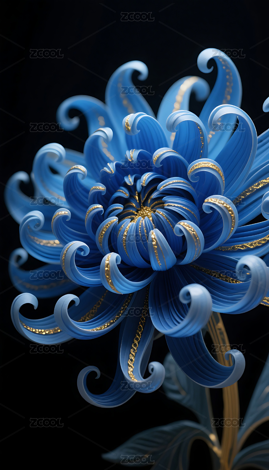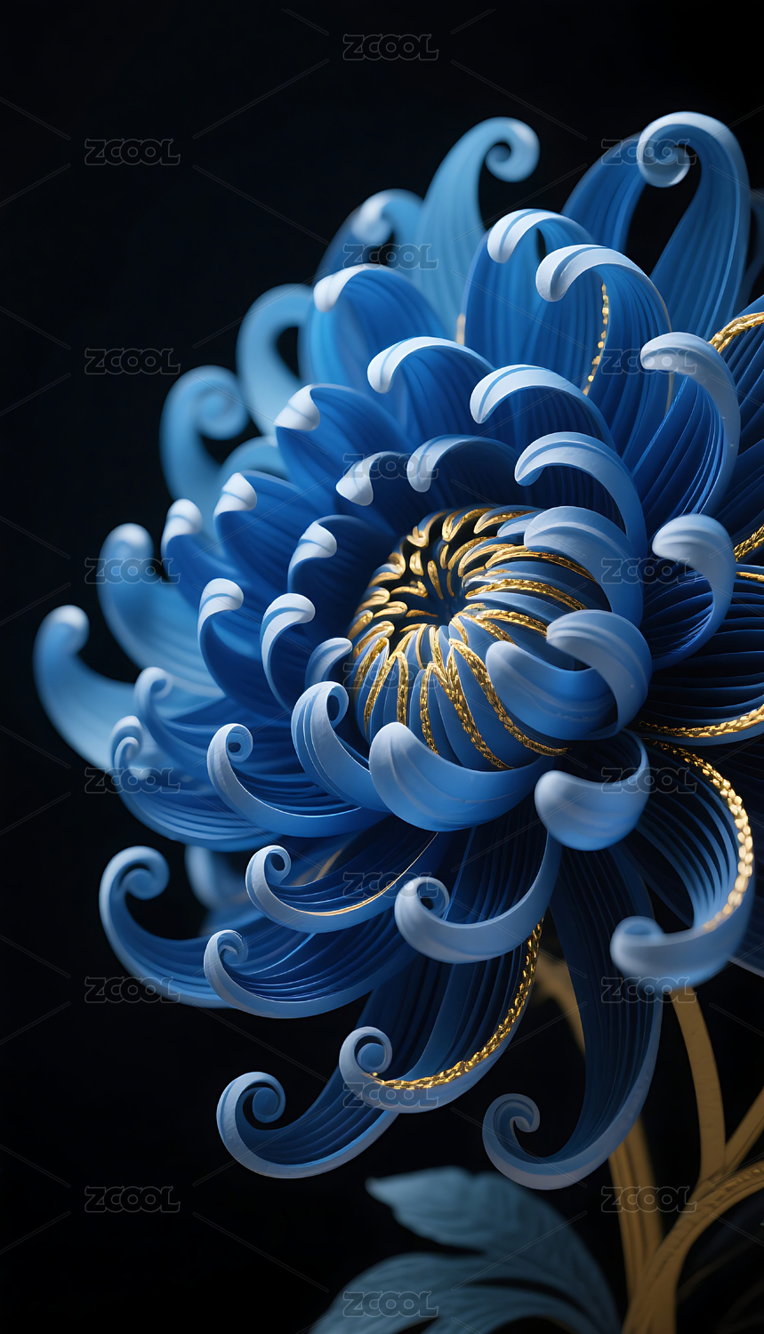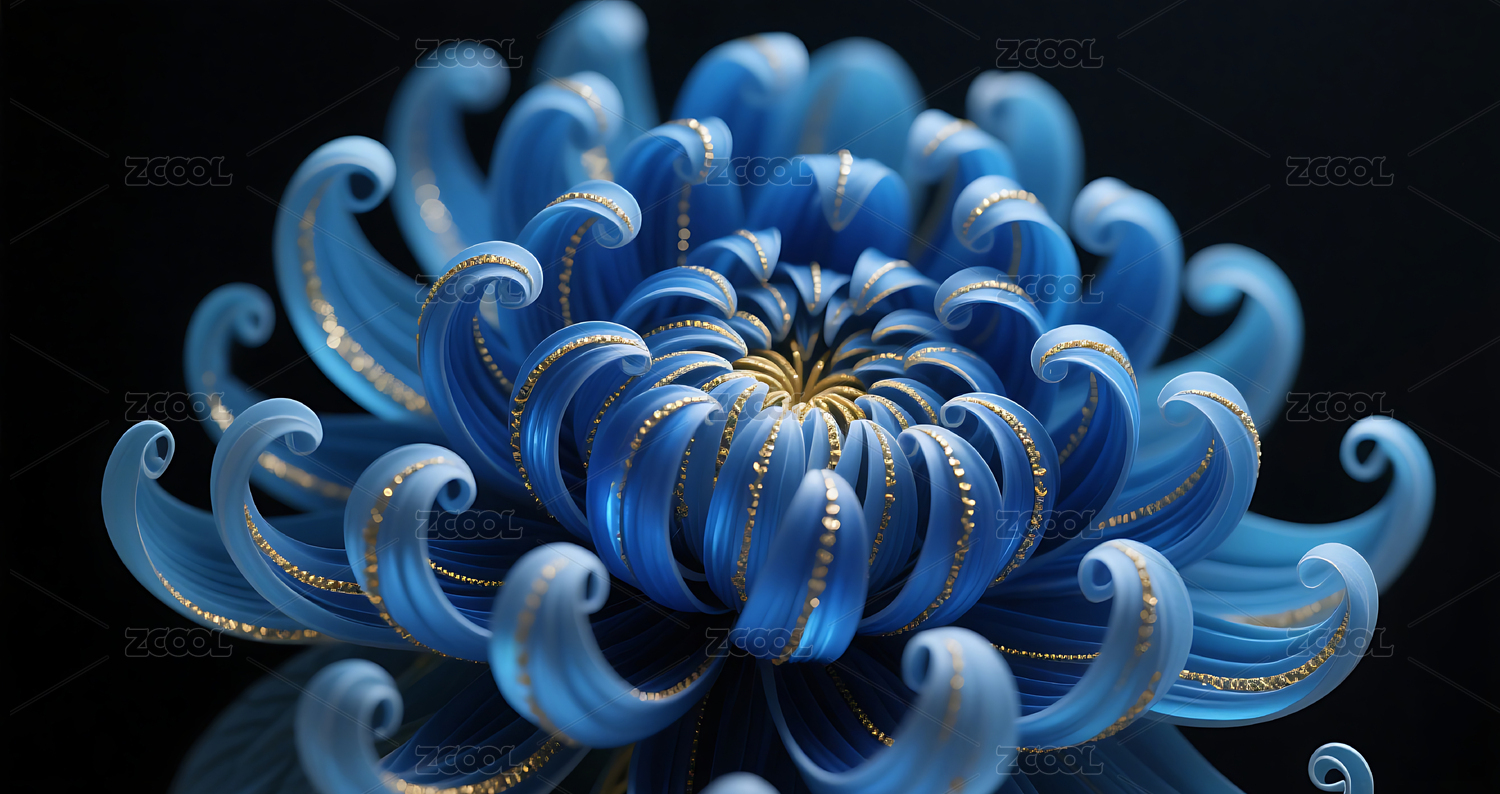 深蓝色渐变立体卷曲琉璃蓝菊花