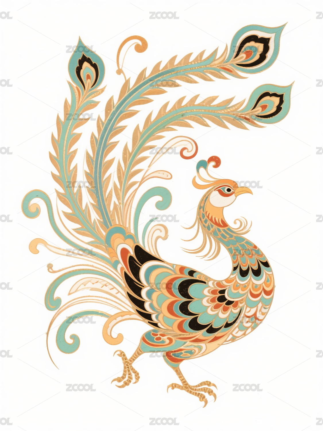 彩色国风凤凰插画祥云环绕展翅姿态的艺术作
