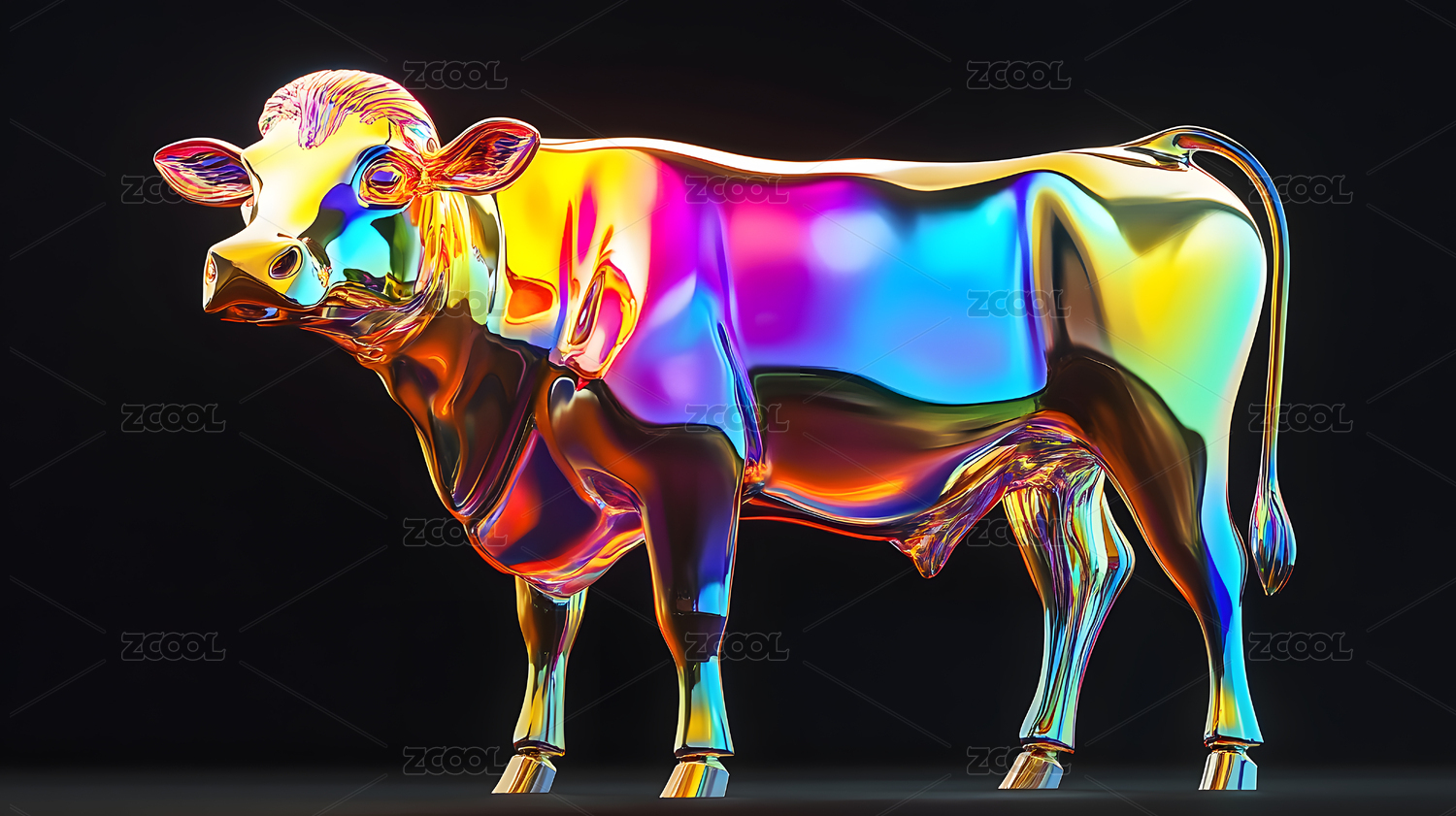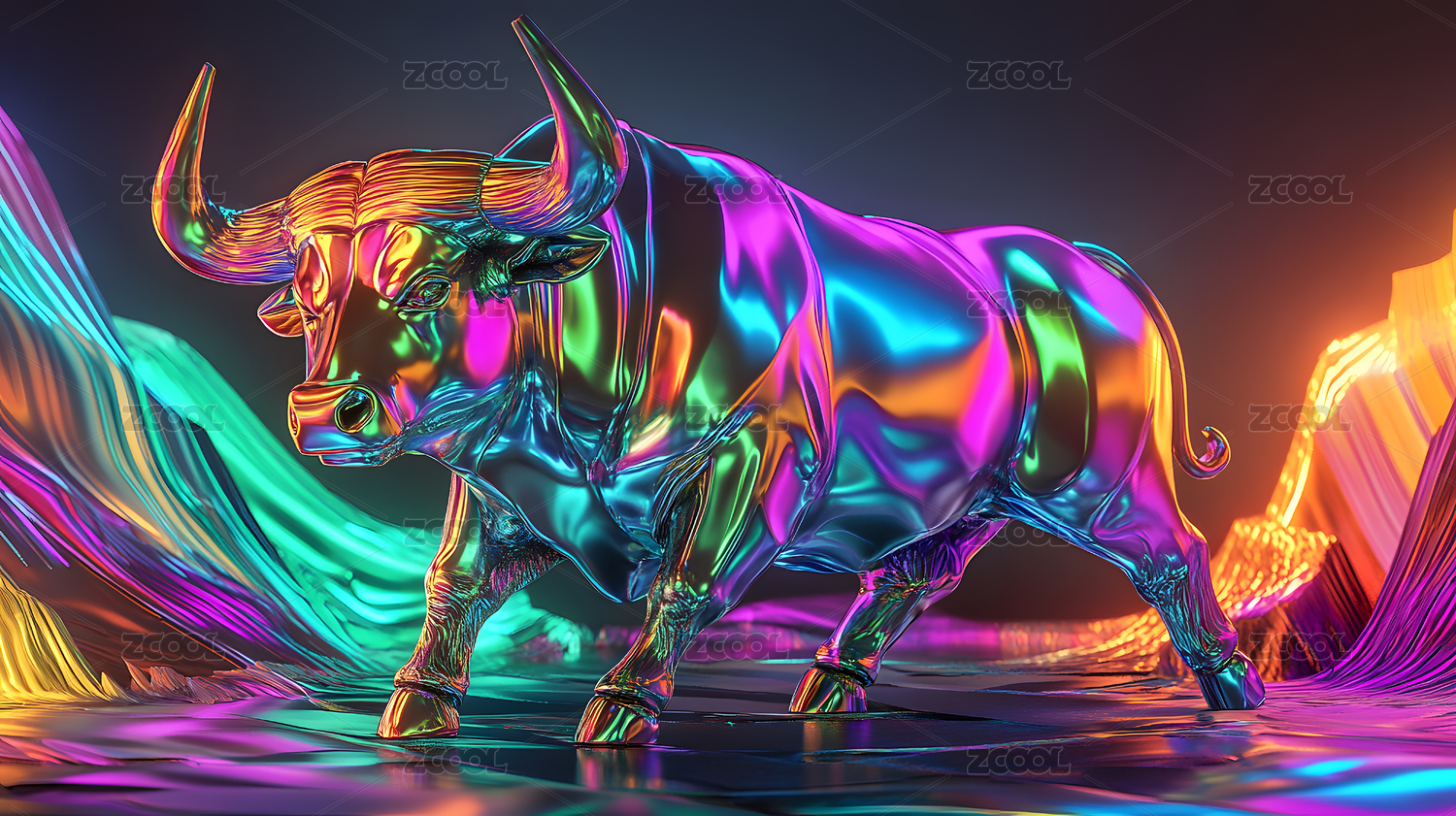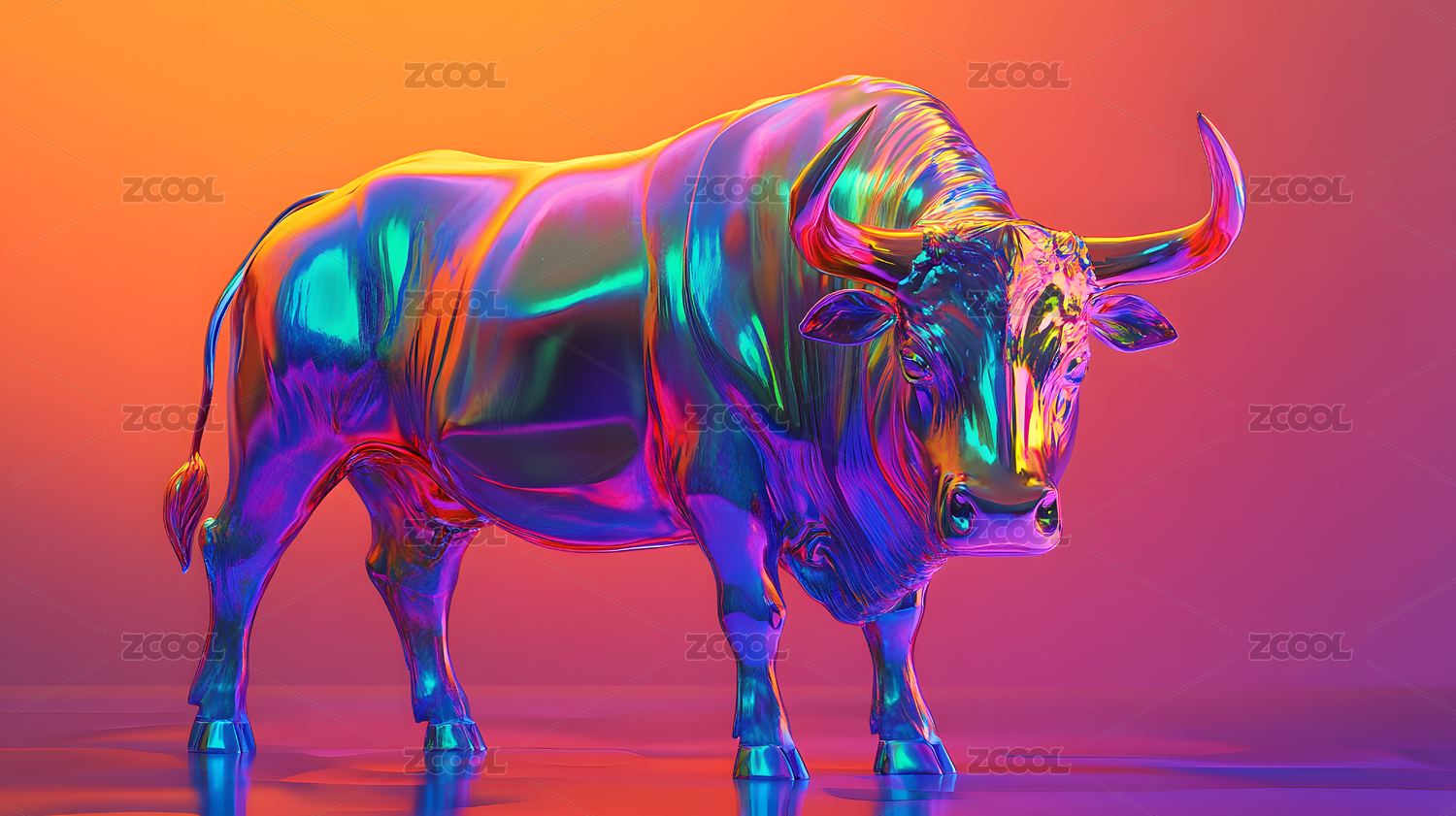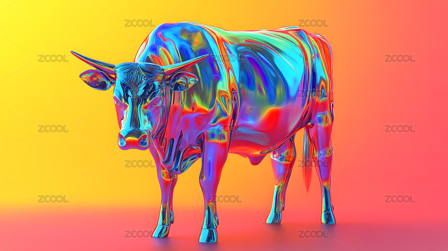 主视觉,彩牛,泼墨,艺术,场景,色彩,公牛,颜料,创意,绘画