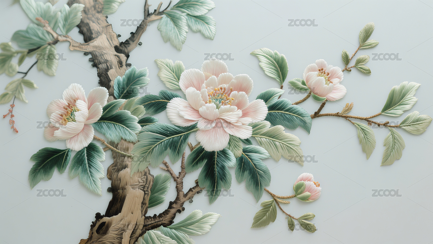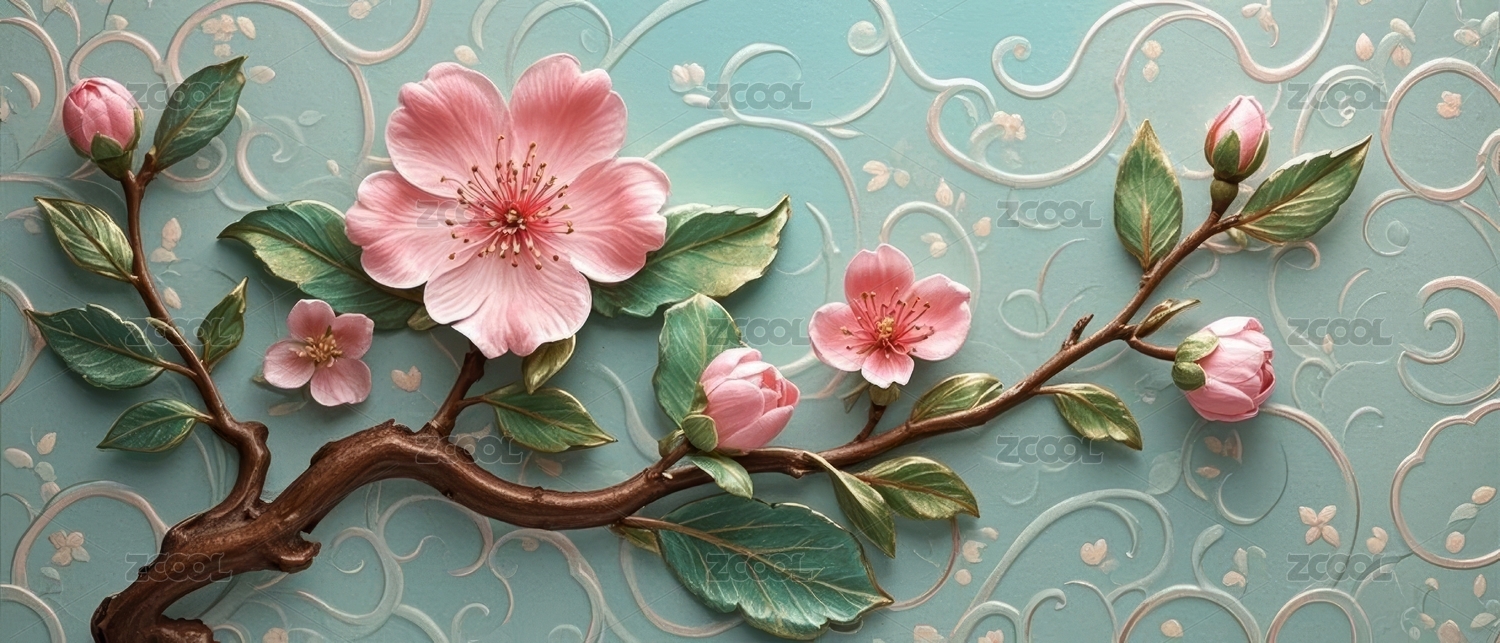 粉花浮雕风装饰场景