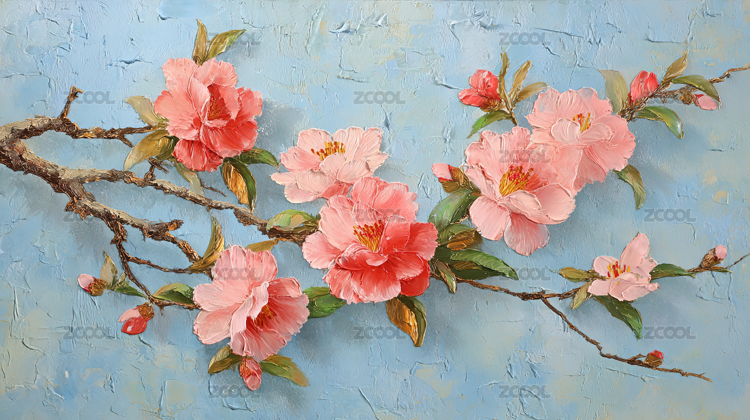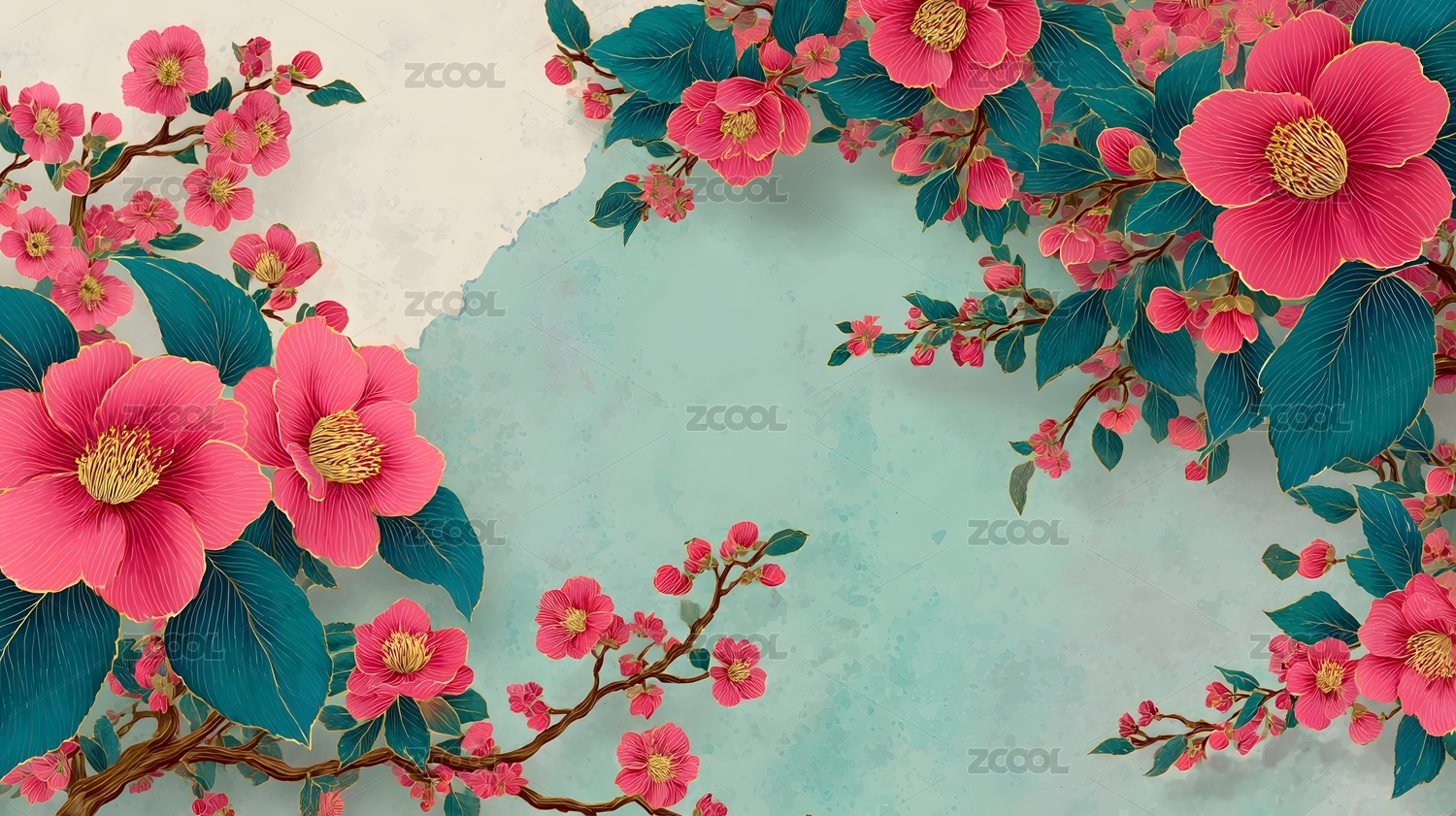 粉色花朵枝桠背景水彩风格