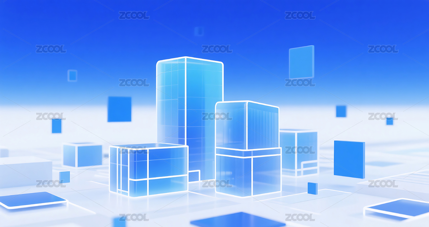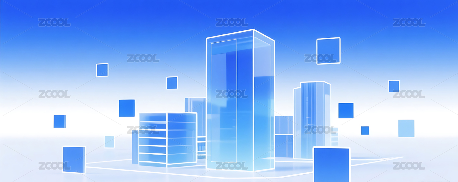 3D蓝色渐变玻璃质感工业工厂建筑背景