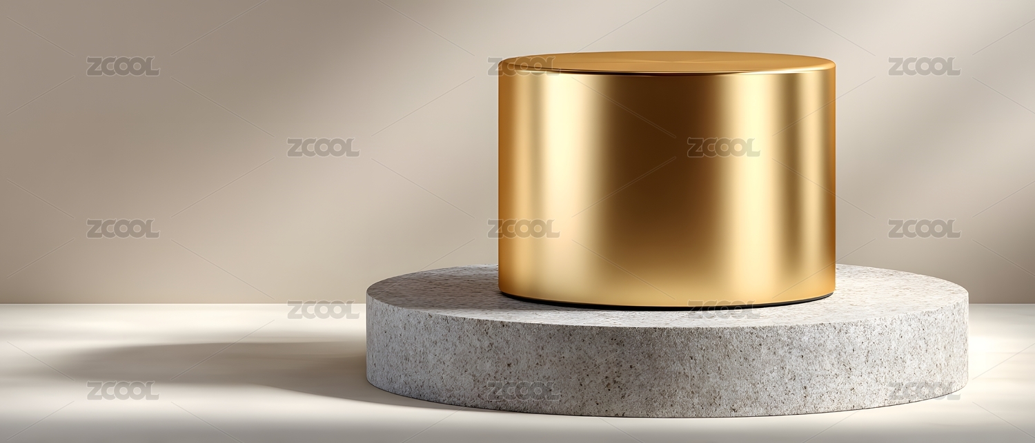 金色圆柱摆件静置于石台 简约氛围
