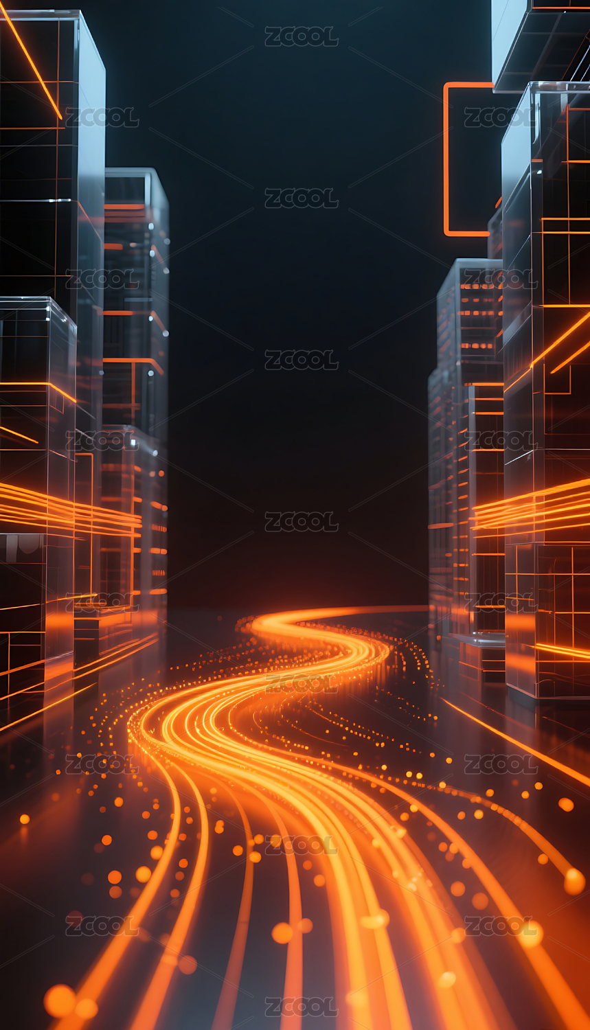 橙色渐变建模科技城光轨背景
