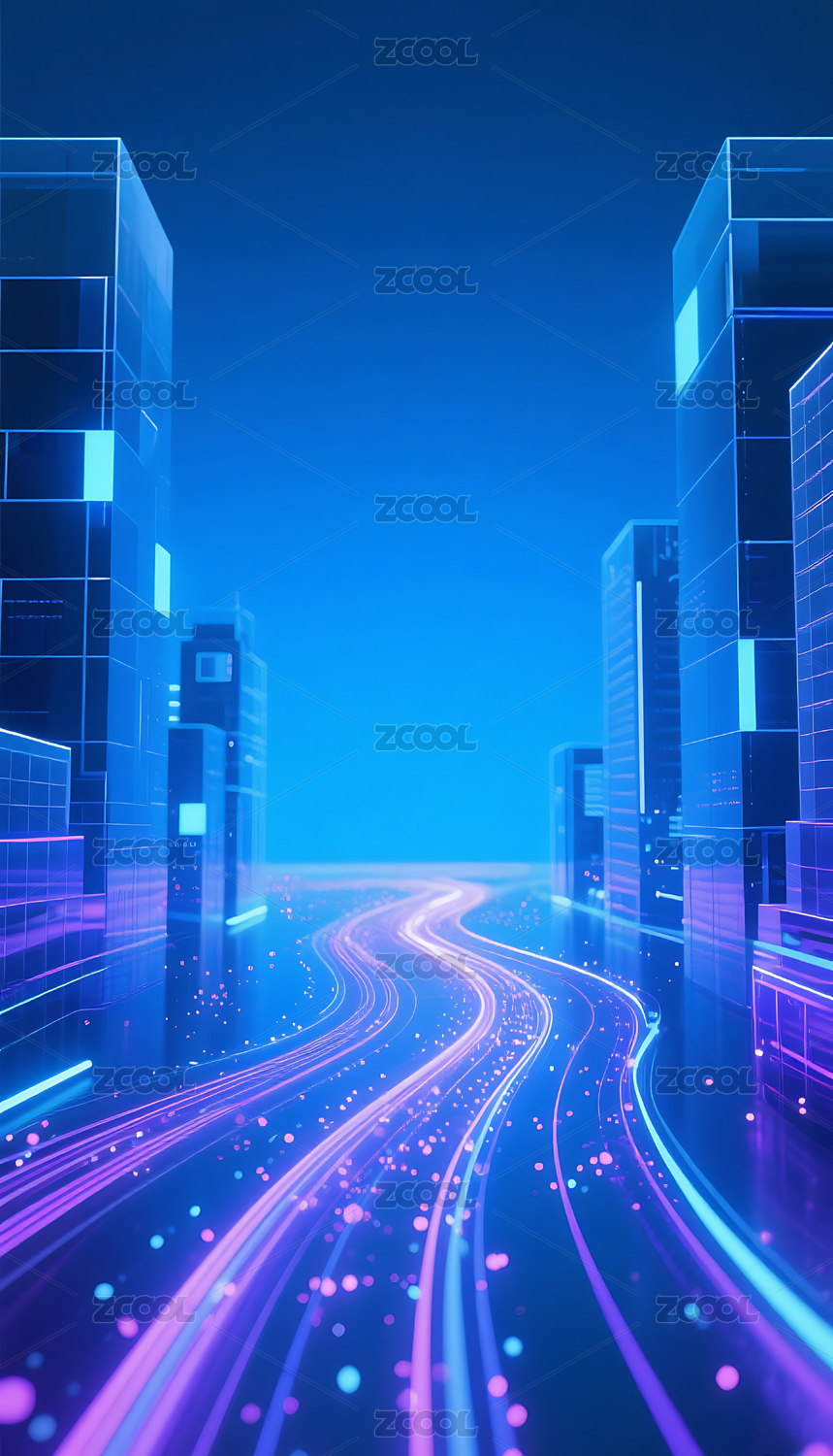 蓝紫色渐变科技城光轨背景