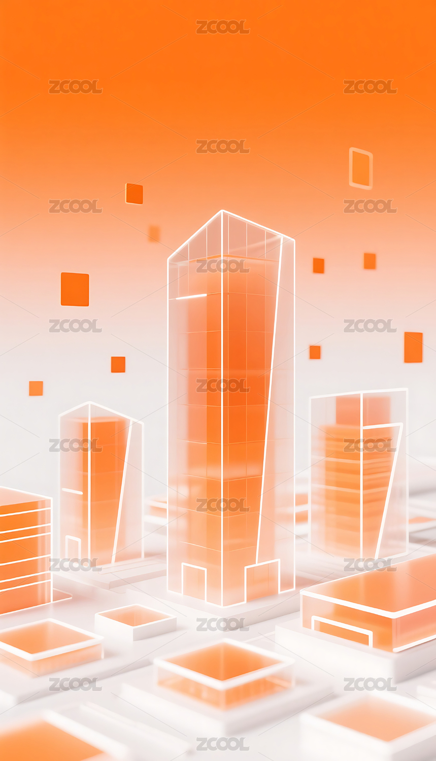橙色,白色,渐变,3D,建模,科技,城市,建筑,背景,商务