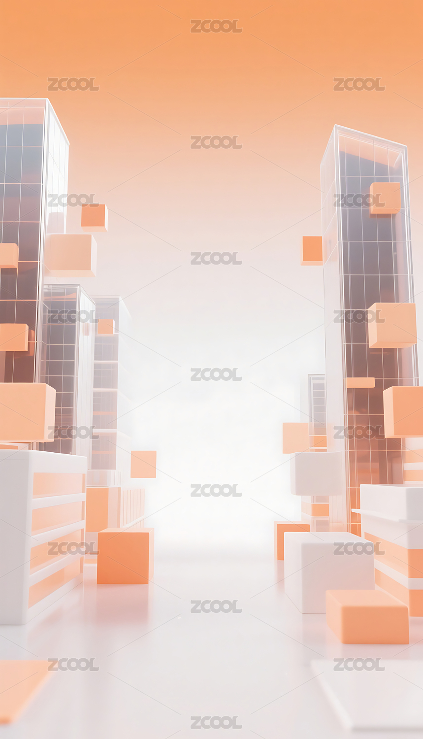 橙色,白色,渐变,3D,建模,科技,城市,建筑,背景,商务