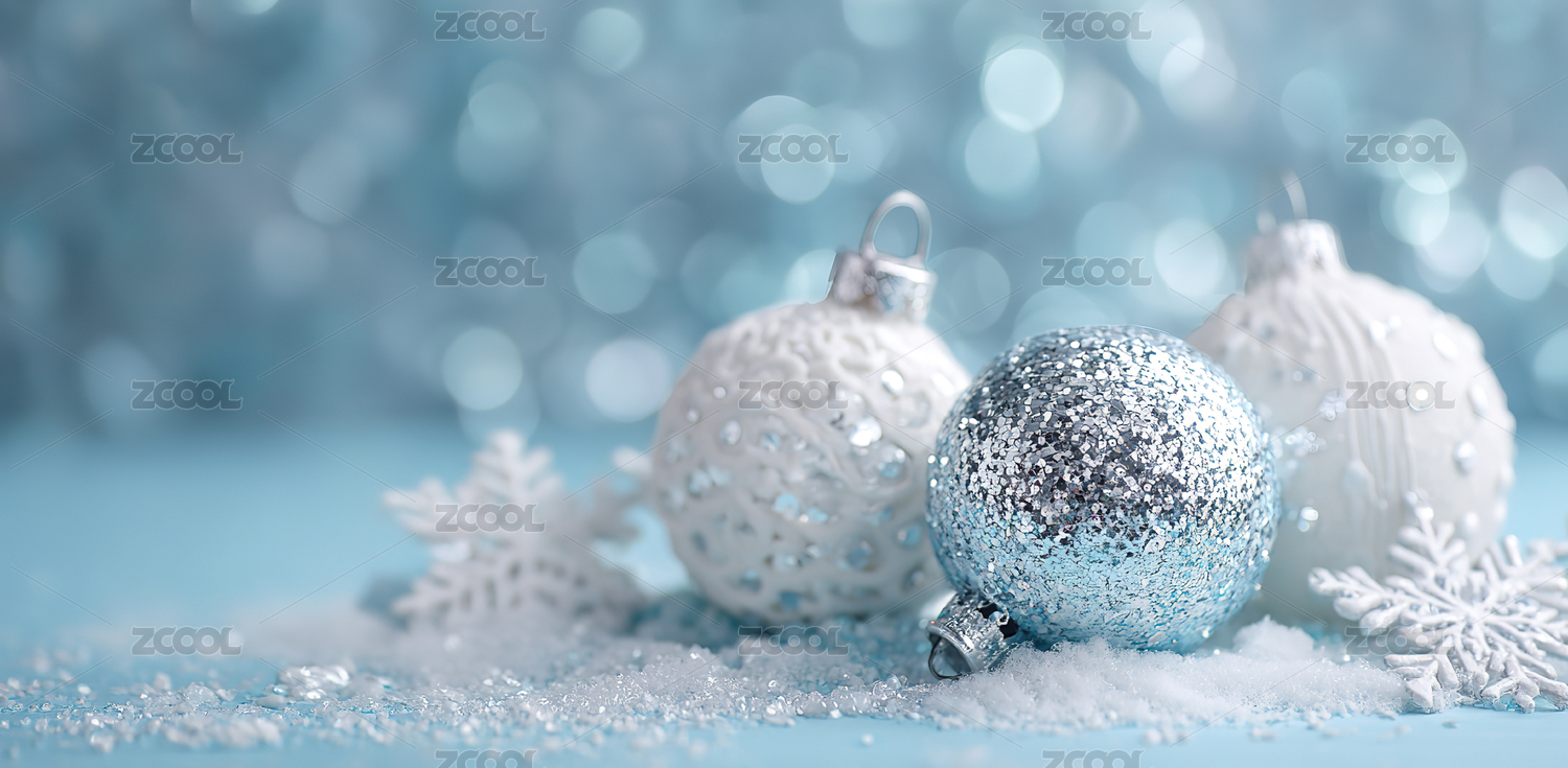 蓝色圣诞球与雪花装饰