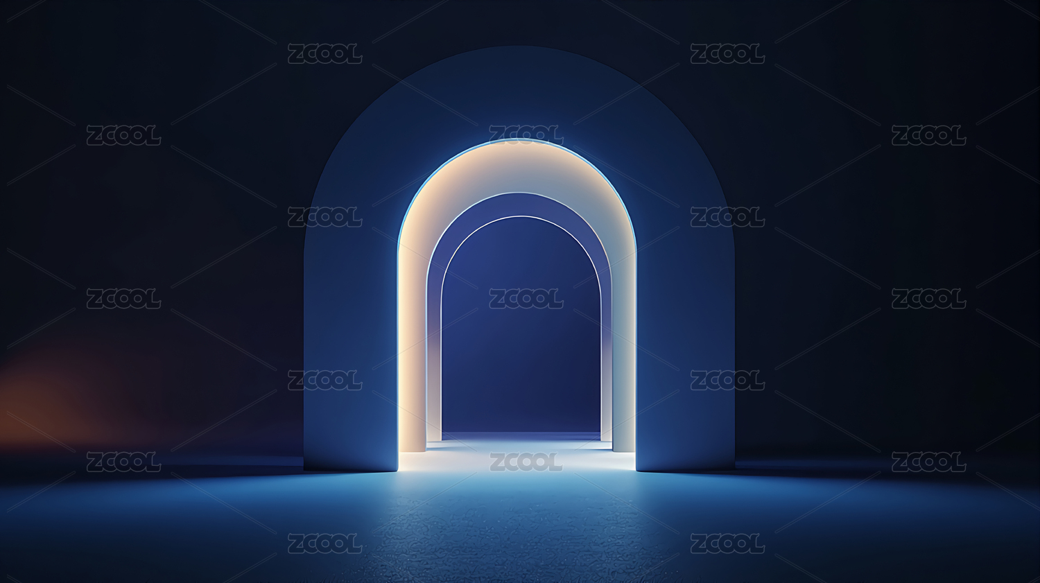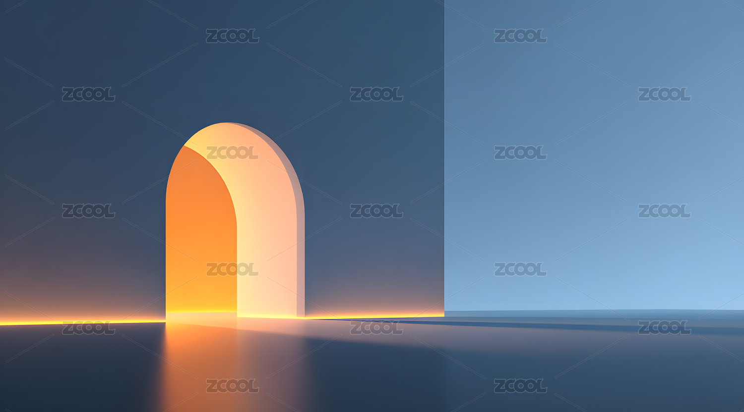 发光拱门室内场景温暖光影