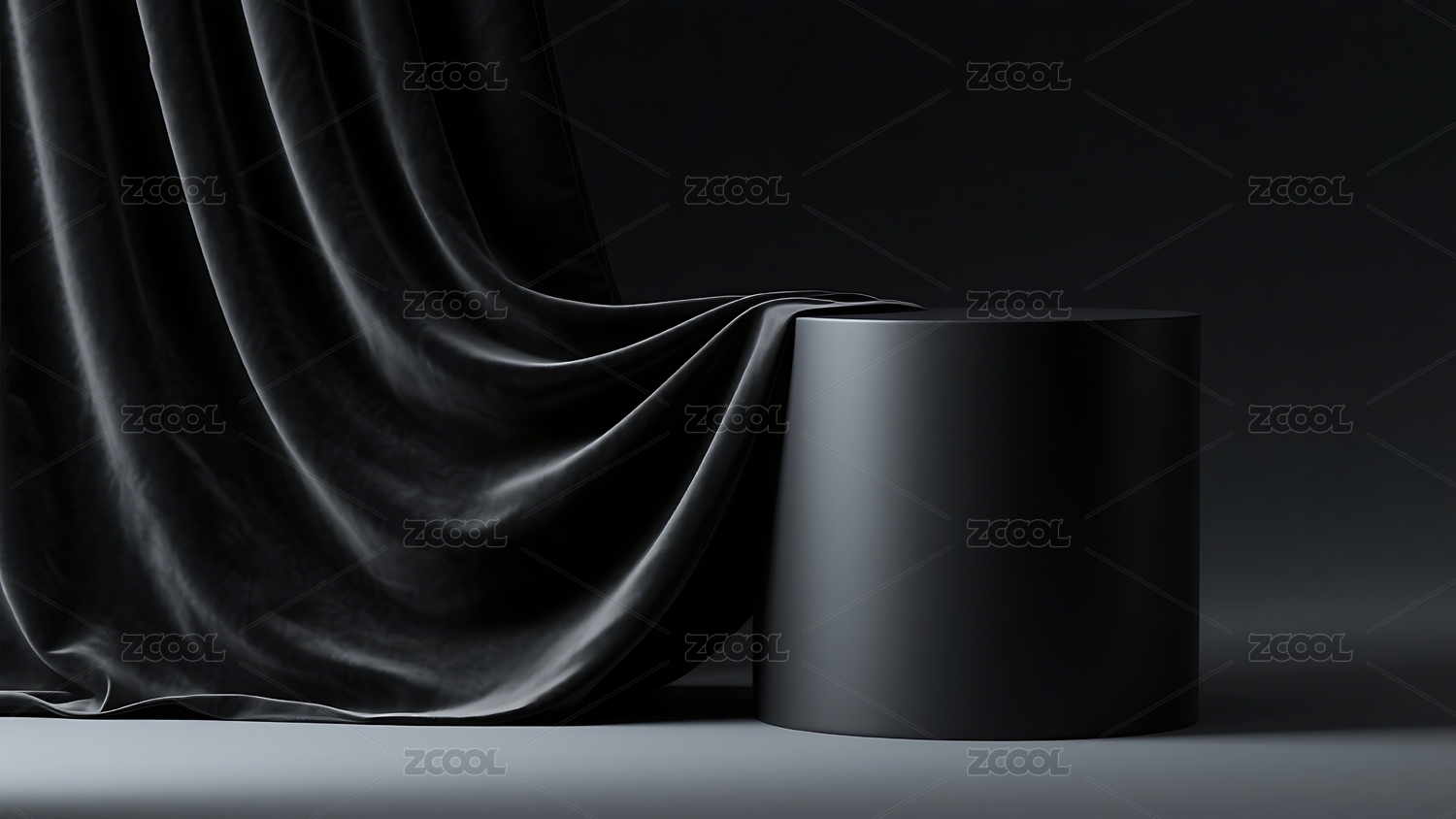 黑色布幔覆盖的简约展示台
