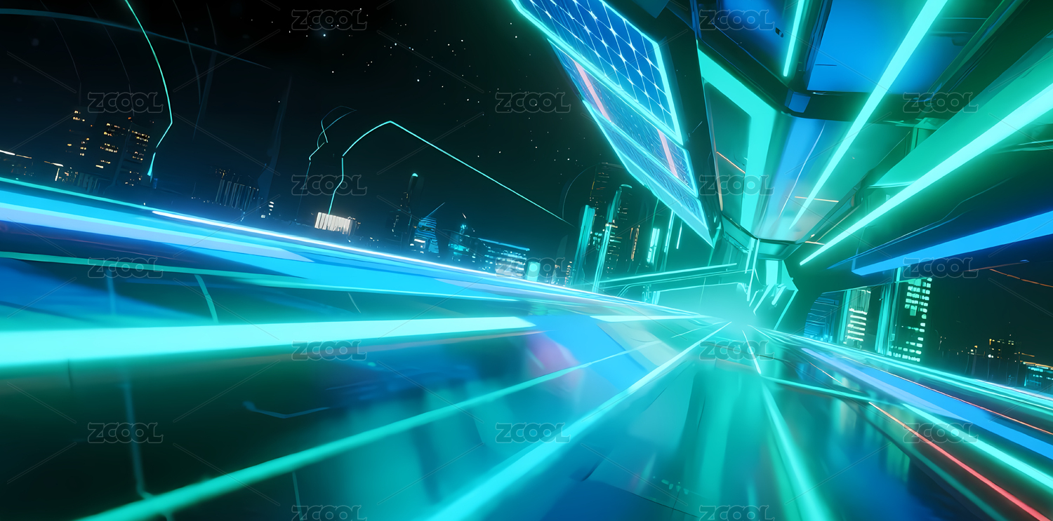 未来城市夜景霓虹灯交织的科技大道