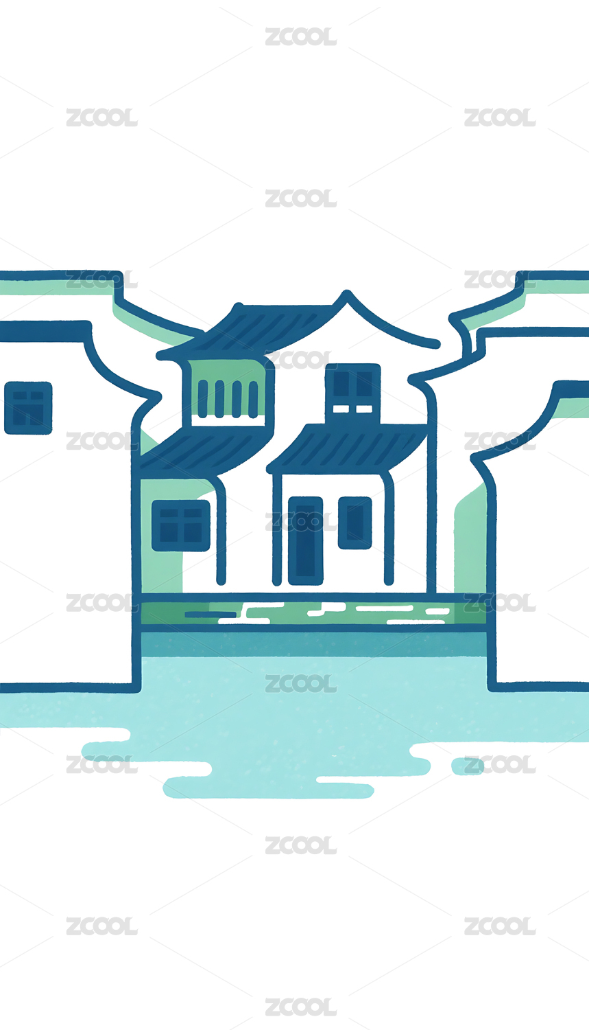 国潮风格,卡通,素材,插画,古建筑,建筑,线稿,简约,江南,江南水乡