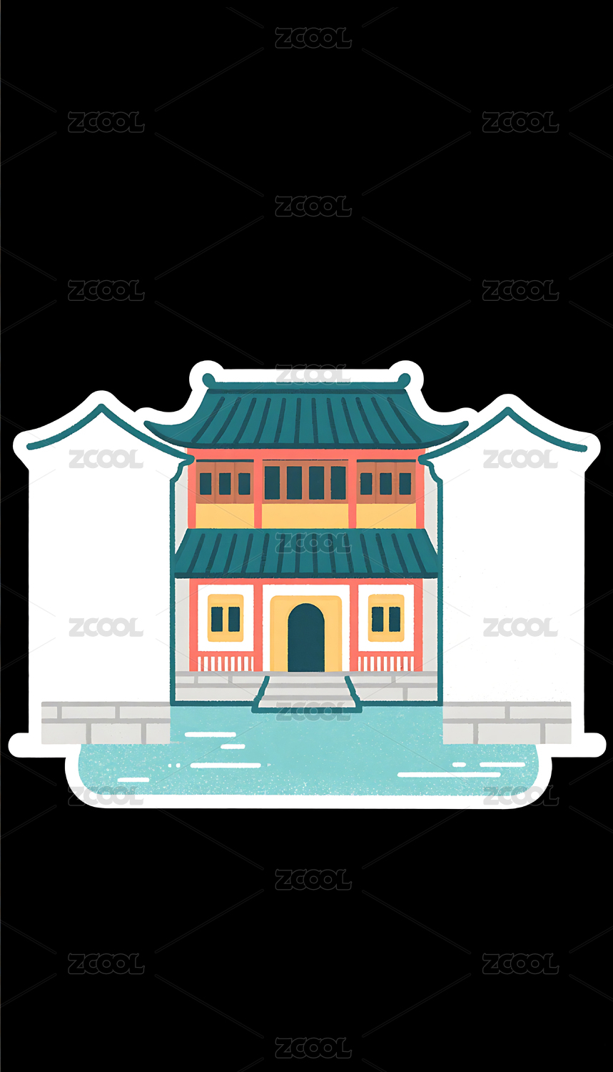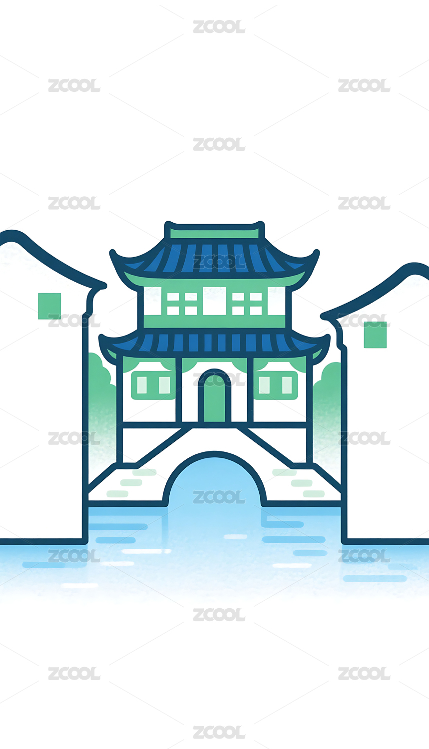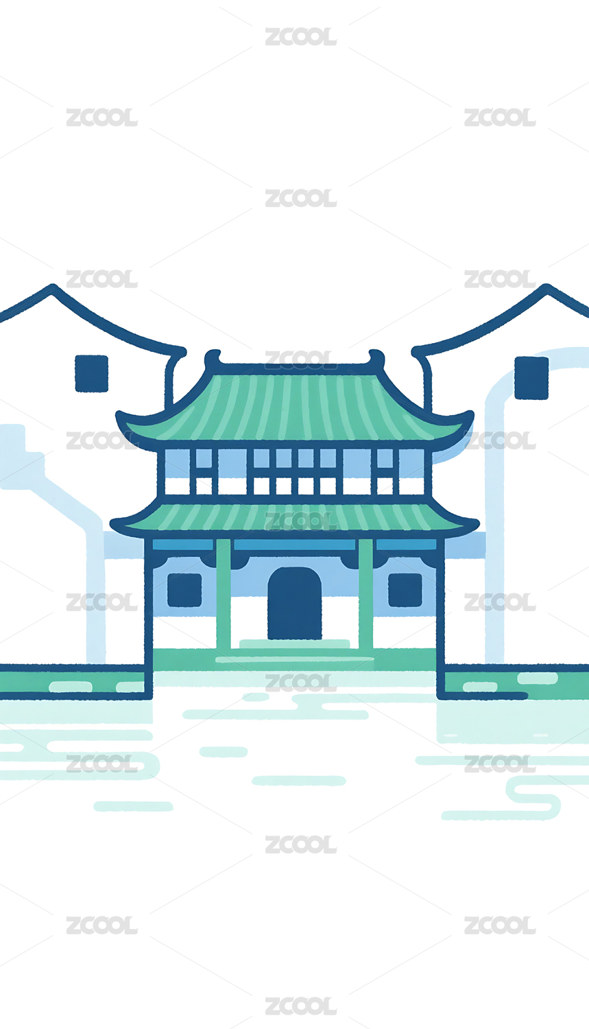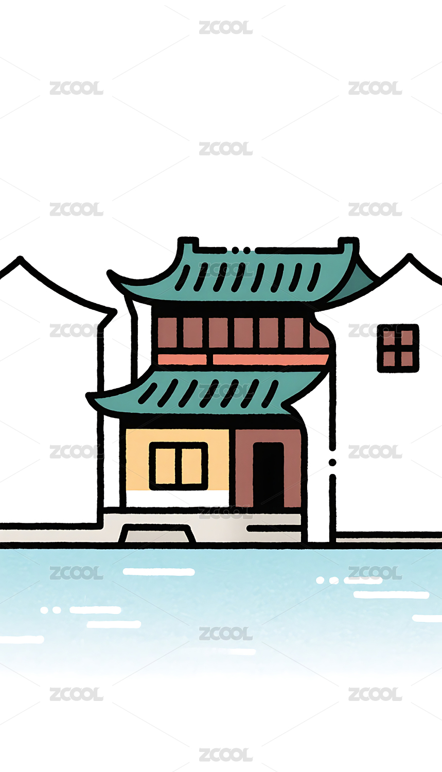国潮风格,卡通,素材,插画,古建筑,建筑,线稿,简约,江南,江南水乡