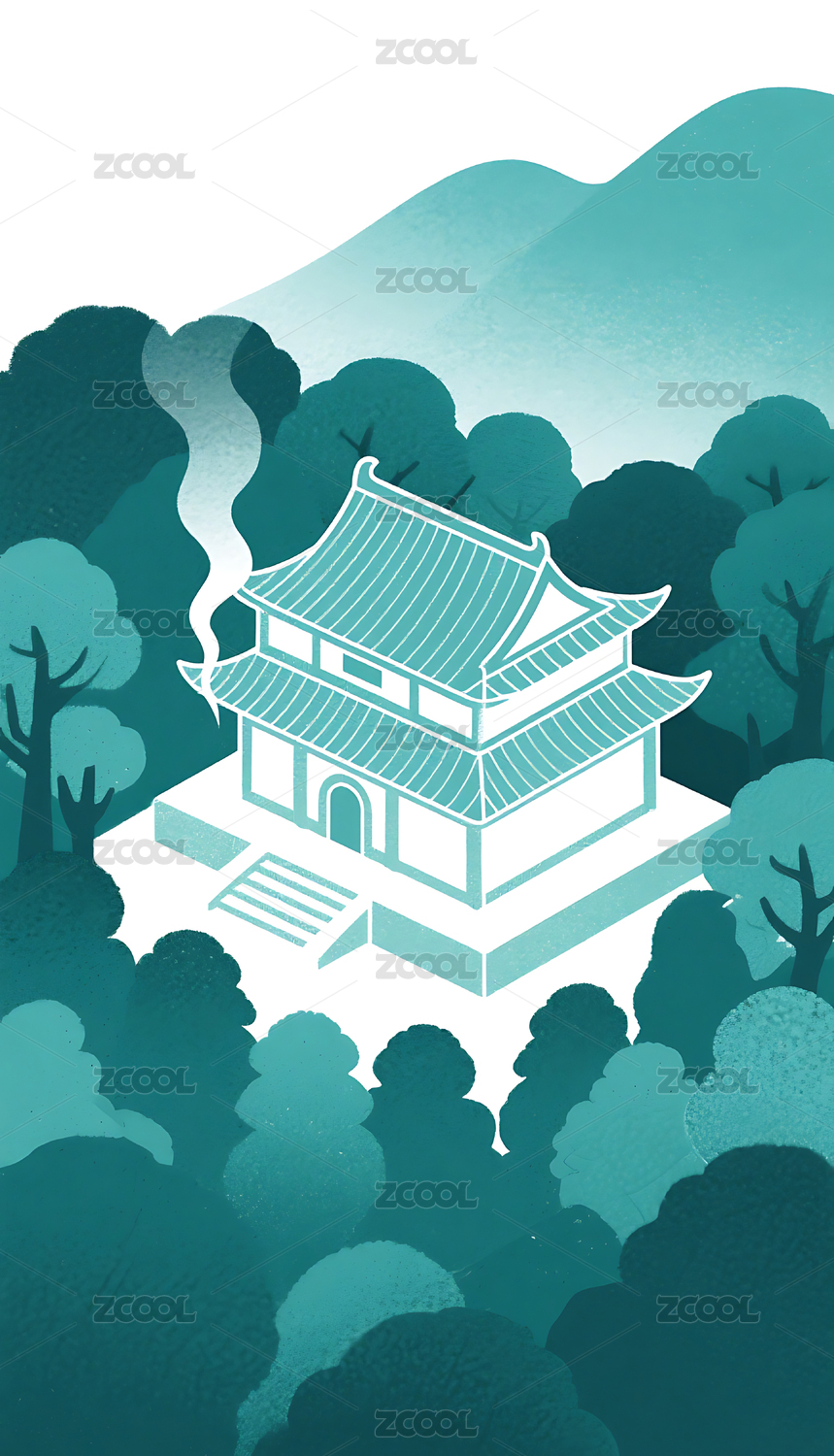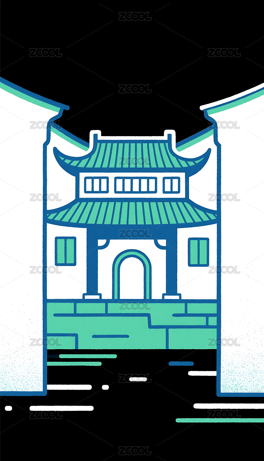 国潮风格,卡通,素材,插画,古建筑,建筑,线稿,简约,江南,江南水乡