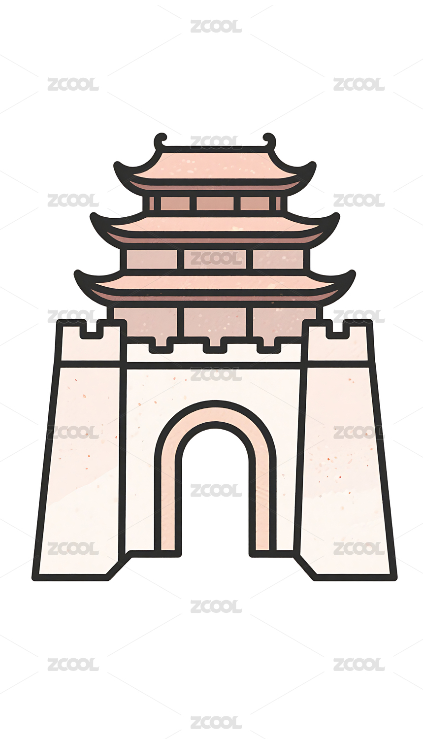 国潮风格,卡通,素材,插画,古建筑,建筑,线稿,简约