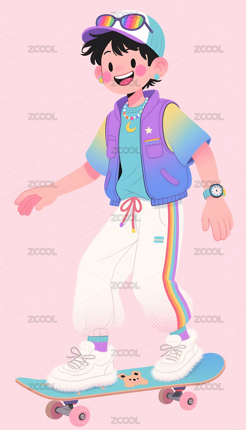 扁平风格,质感,渐变,时尚,男生,插画,帅气,素材,平面,插图