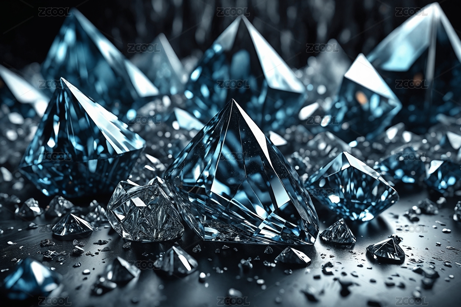 闪耀的蓝色钻石堆砌在一起