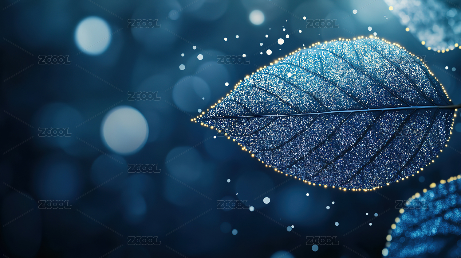 蓝色背景下的发光叶子