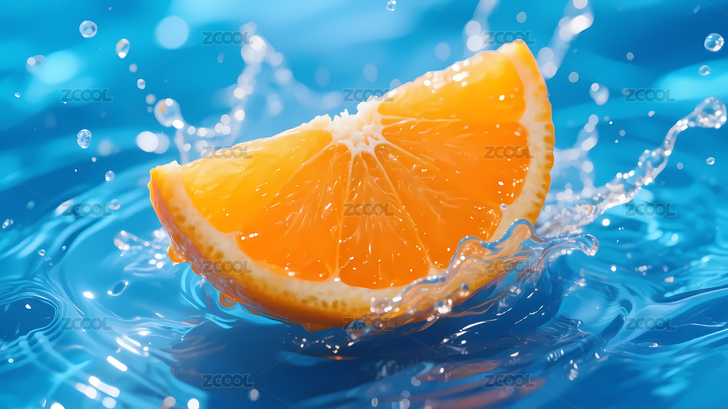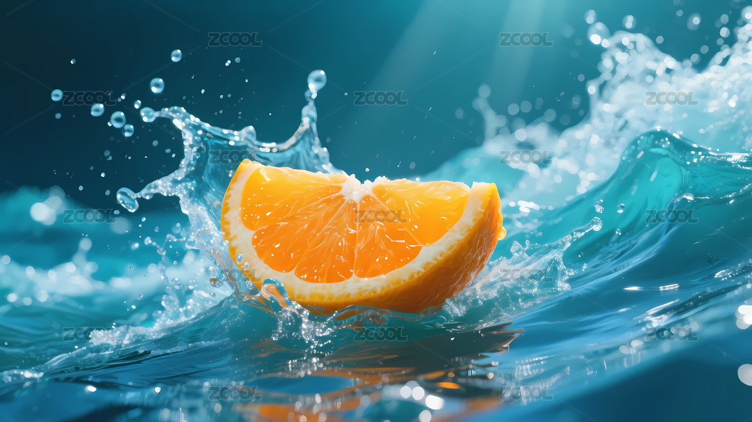 橙子片水波飞溅