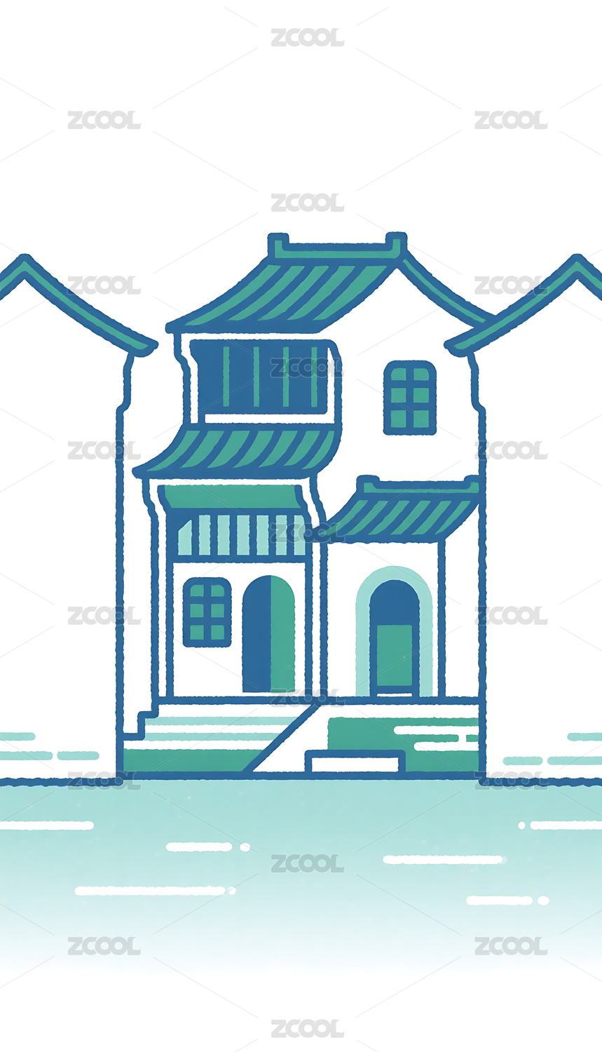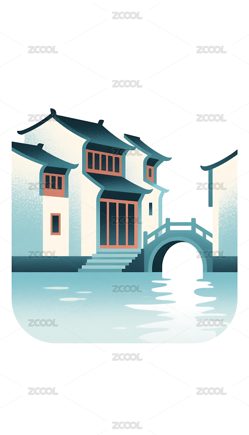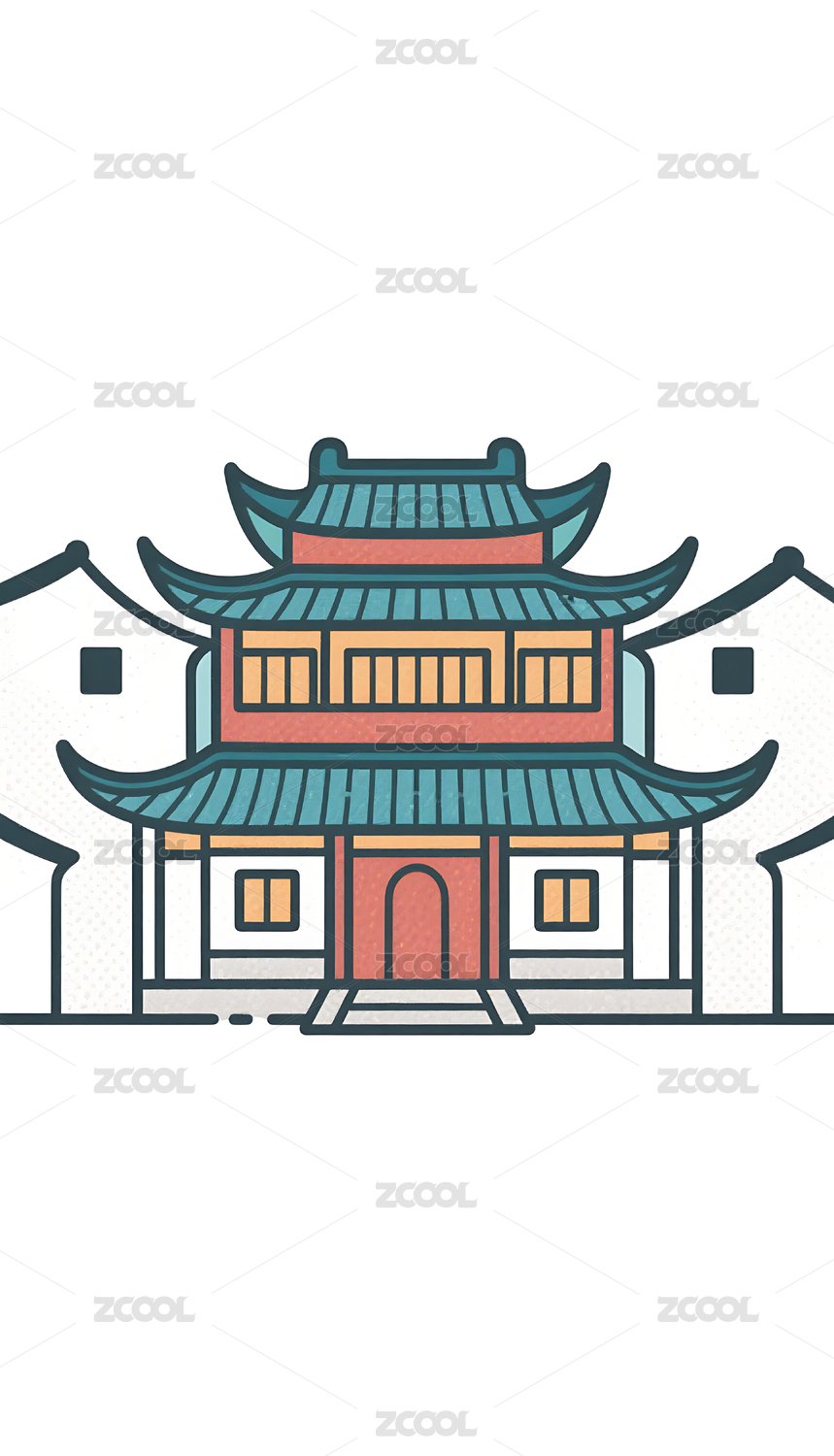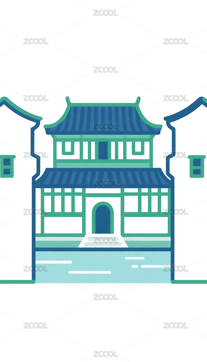 国潮风格,卡通,素材,插画,古建筑,建筑,线稿,简约,江南,江南水乡