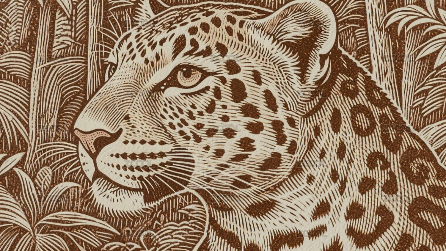豹头黑白感版画场景