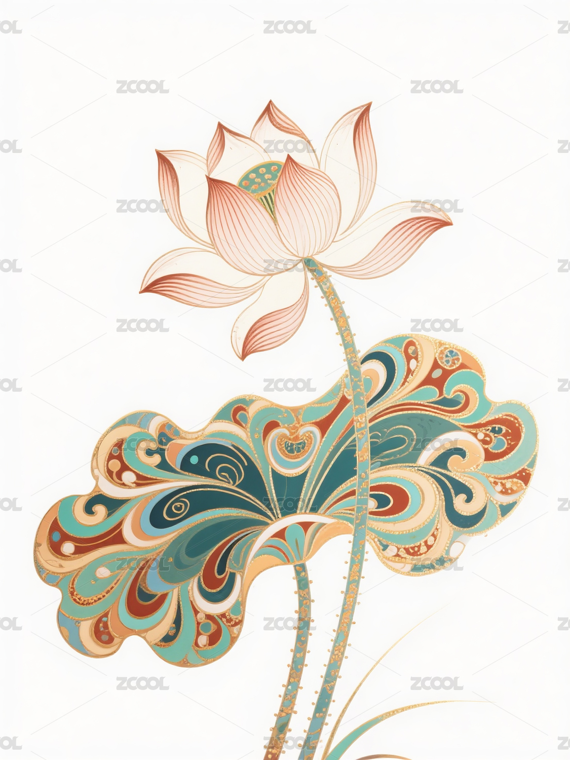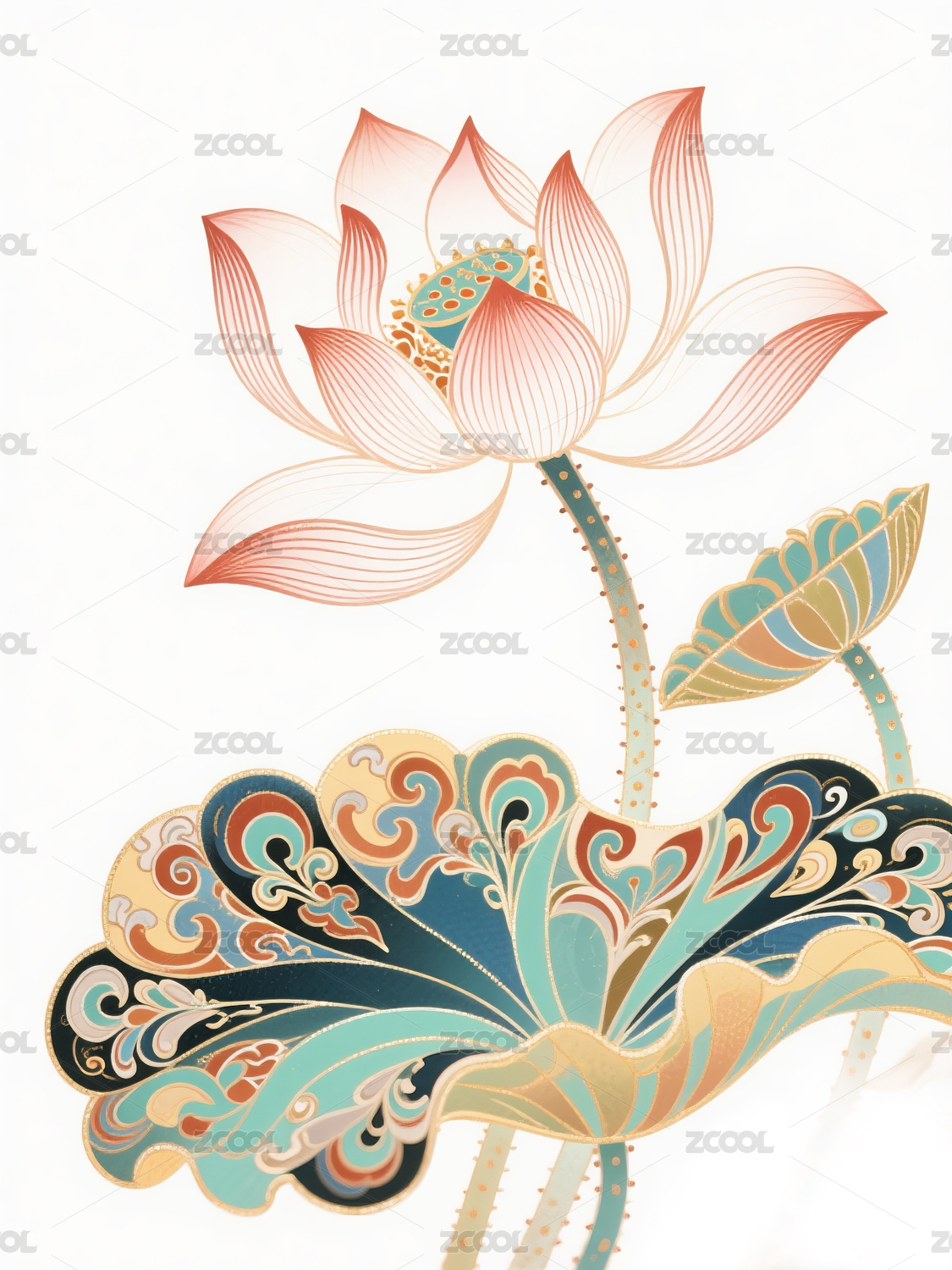 主视觉,莲花,国潮,插画,场景,花瓣,荷叶,色彩,传统,艺术