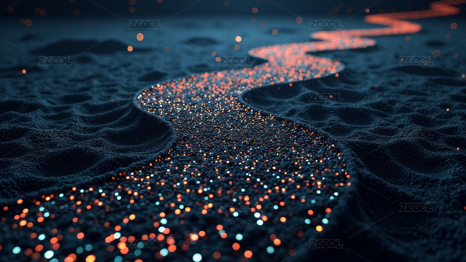 蓝色和橙色渐变粒子璀璨光带