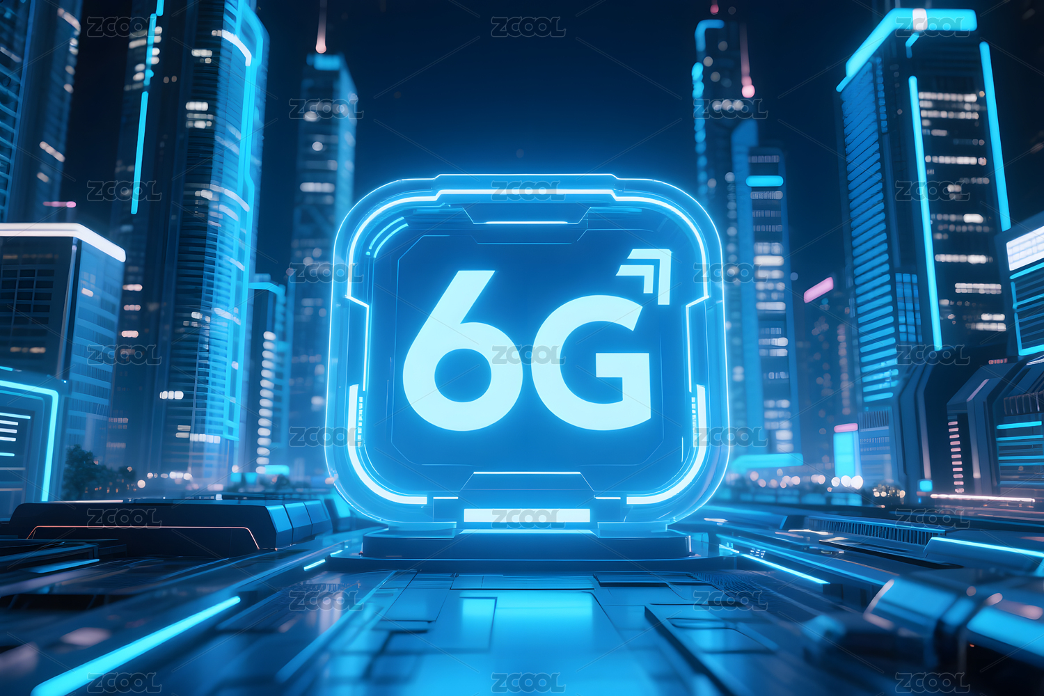 夜景蓝色6G科技标识