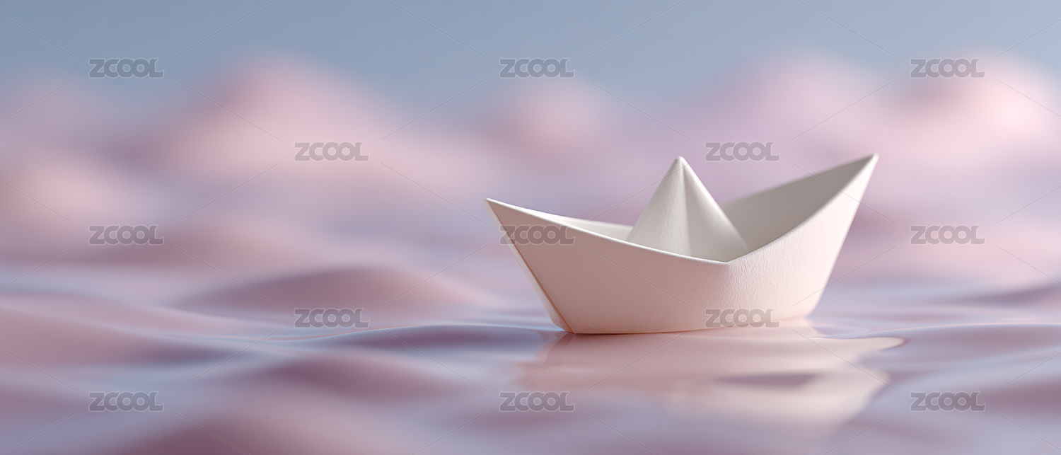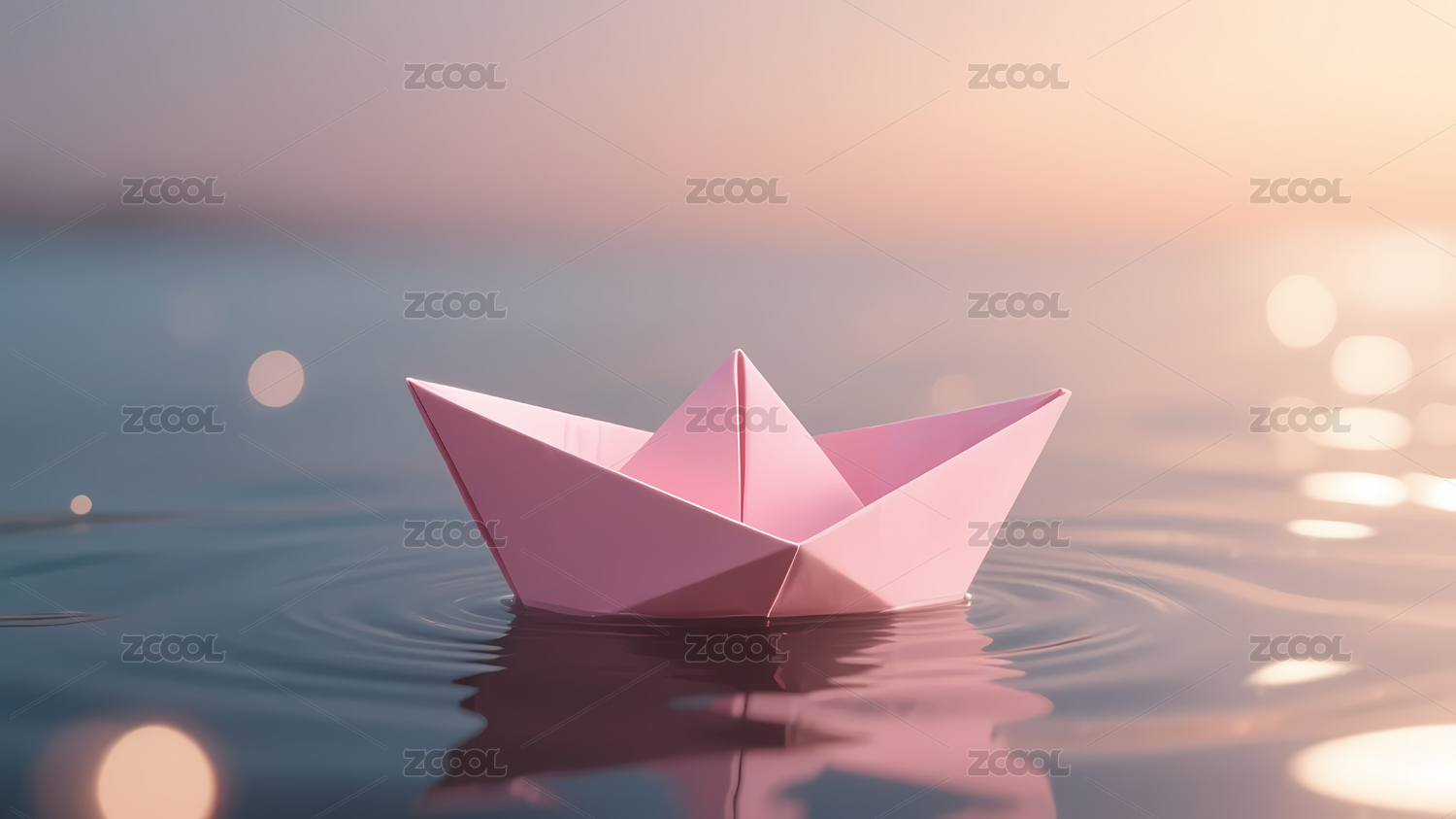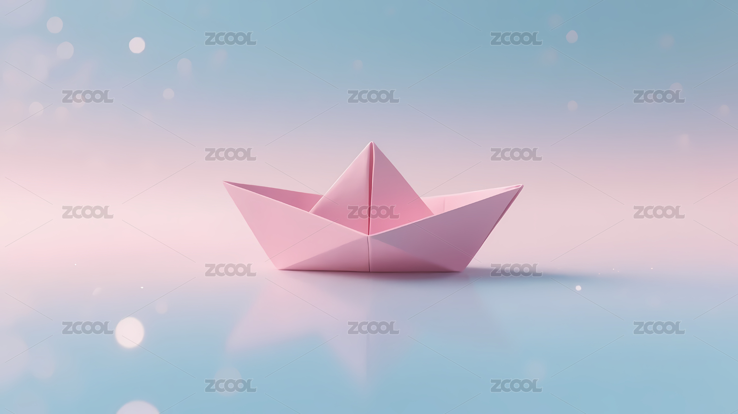 背景,蓝色,渐变,柔和,粉色,水面,光斑,纸船,梦幻,漂浮