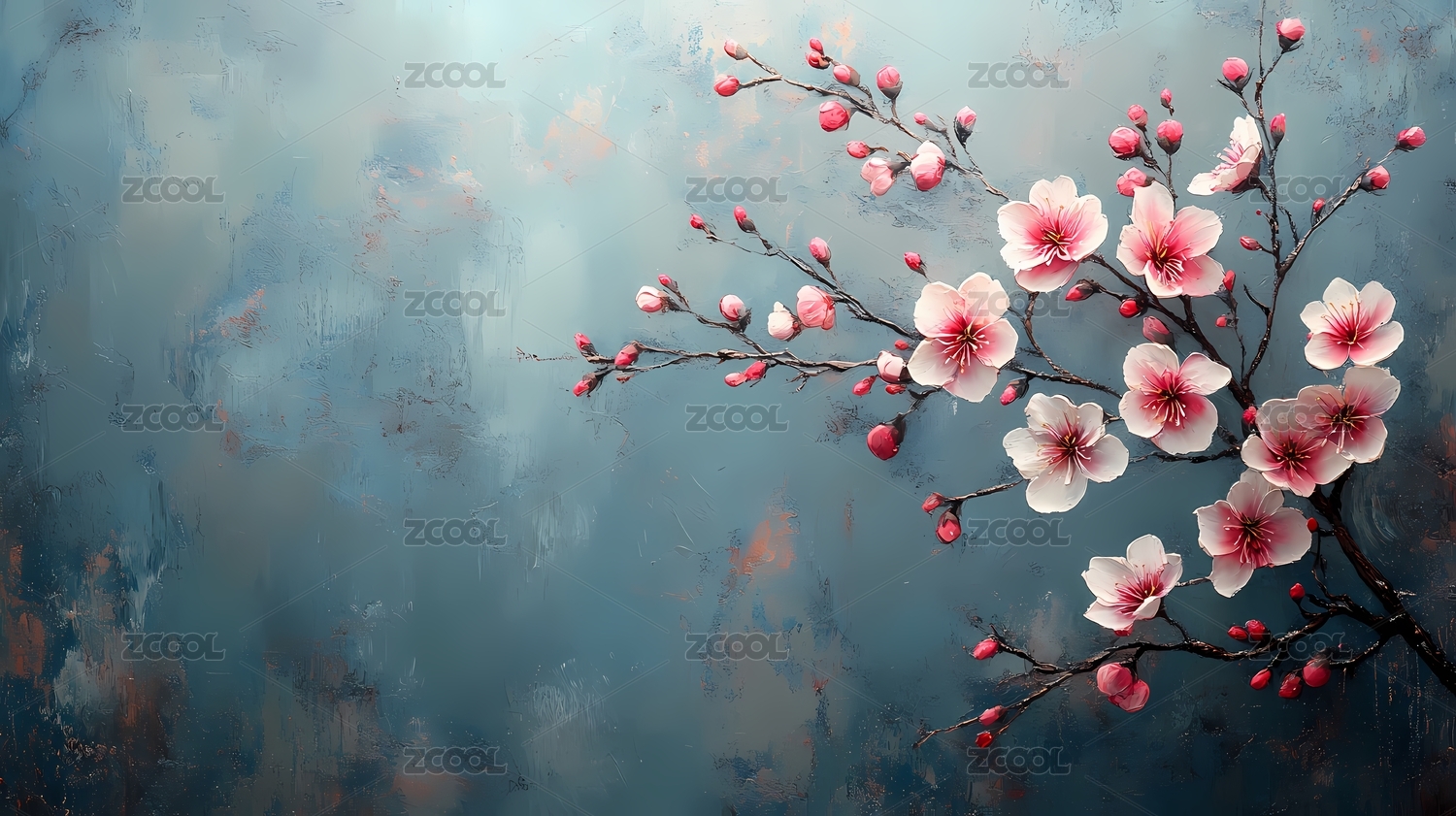 粉色花朵绽放淡蓝色背景