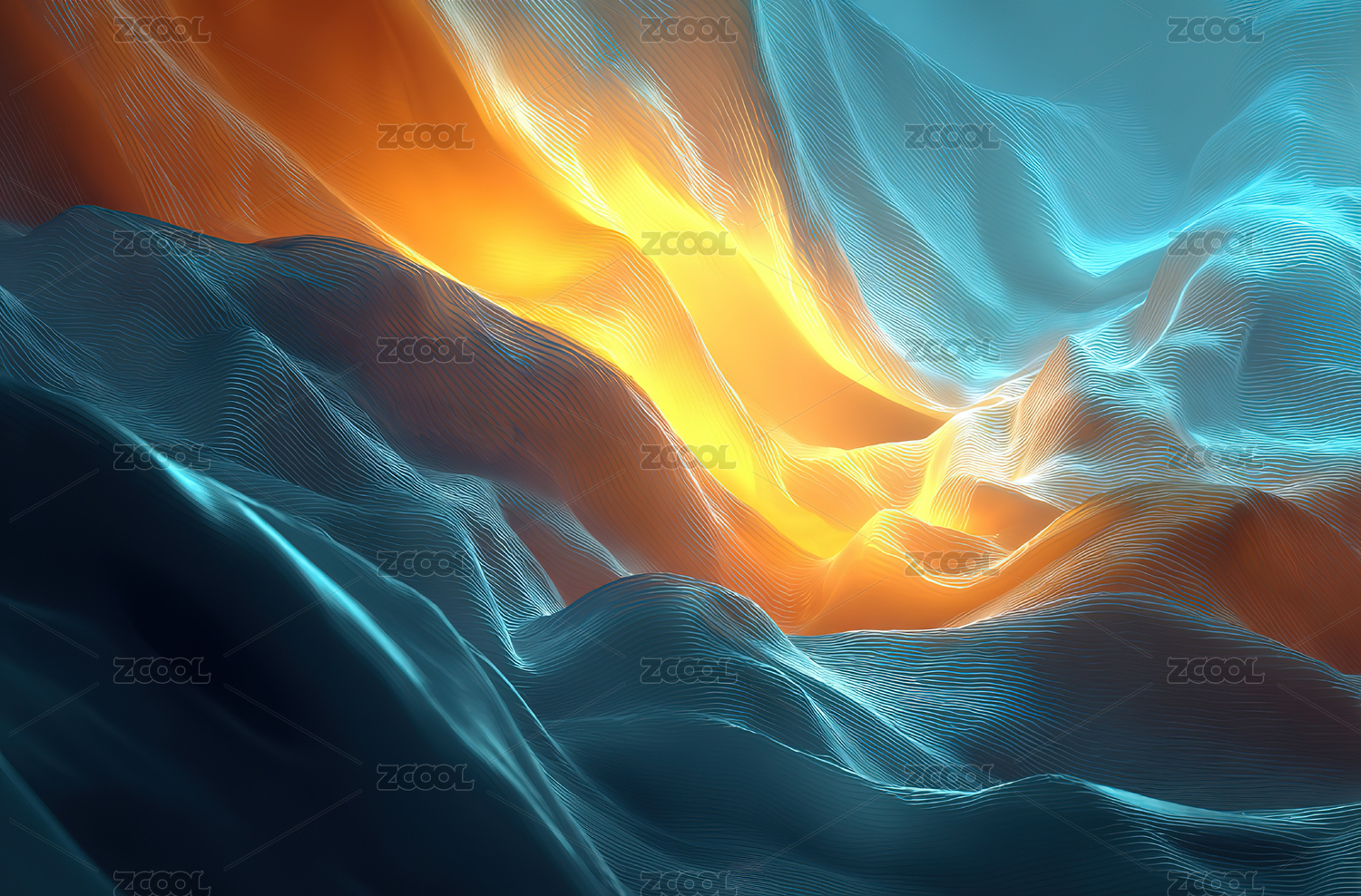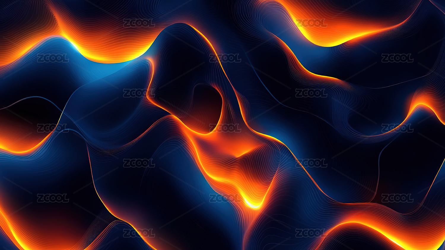 炫彩未来科技感3D蓝橙光流抽象风格背景