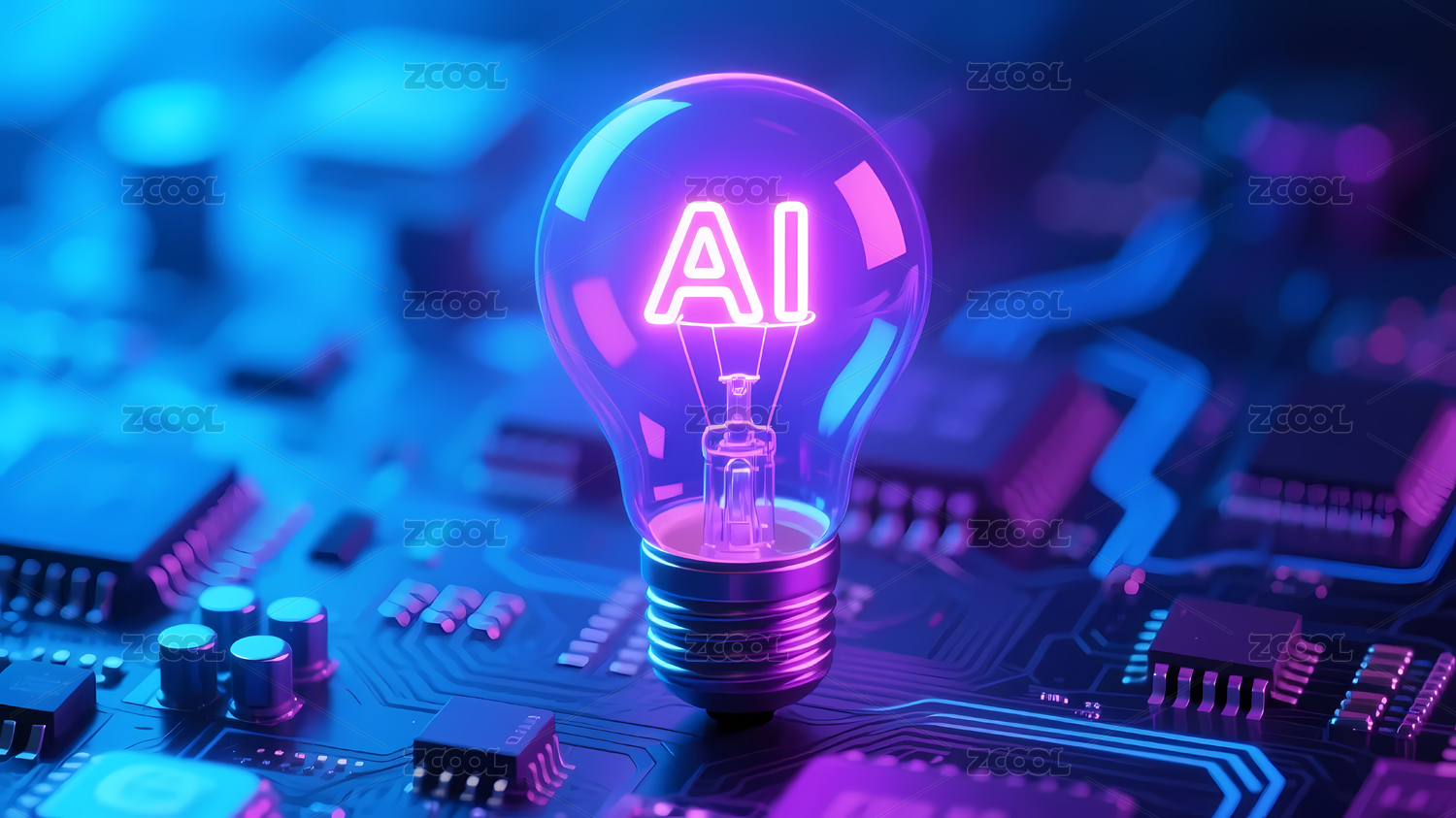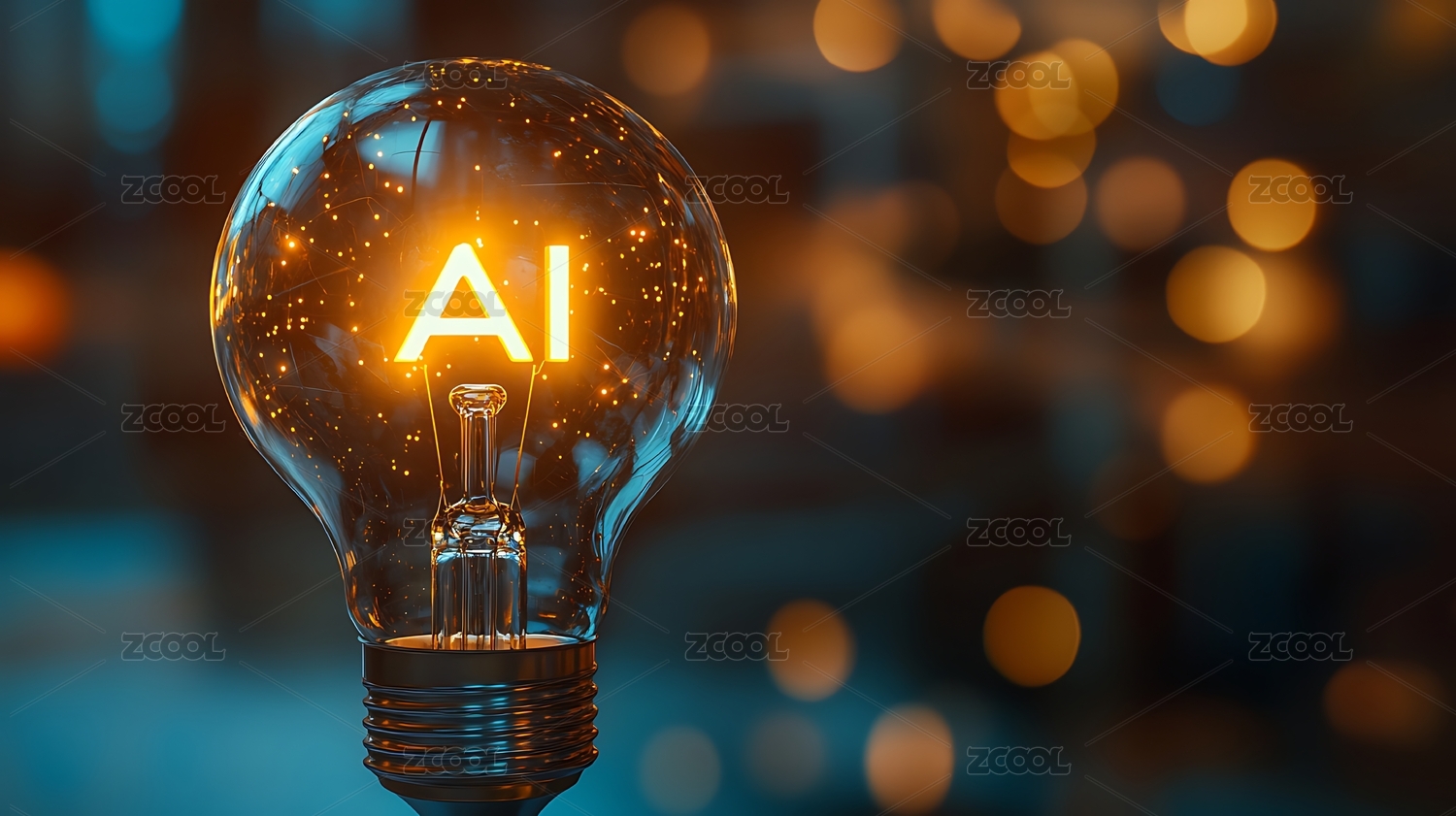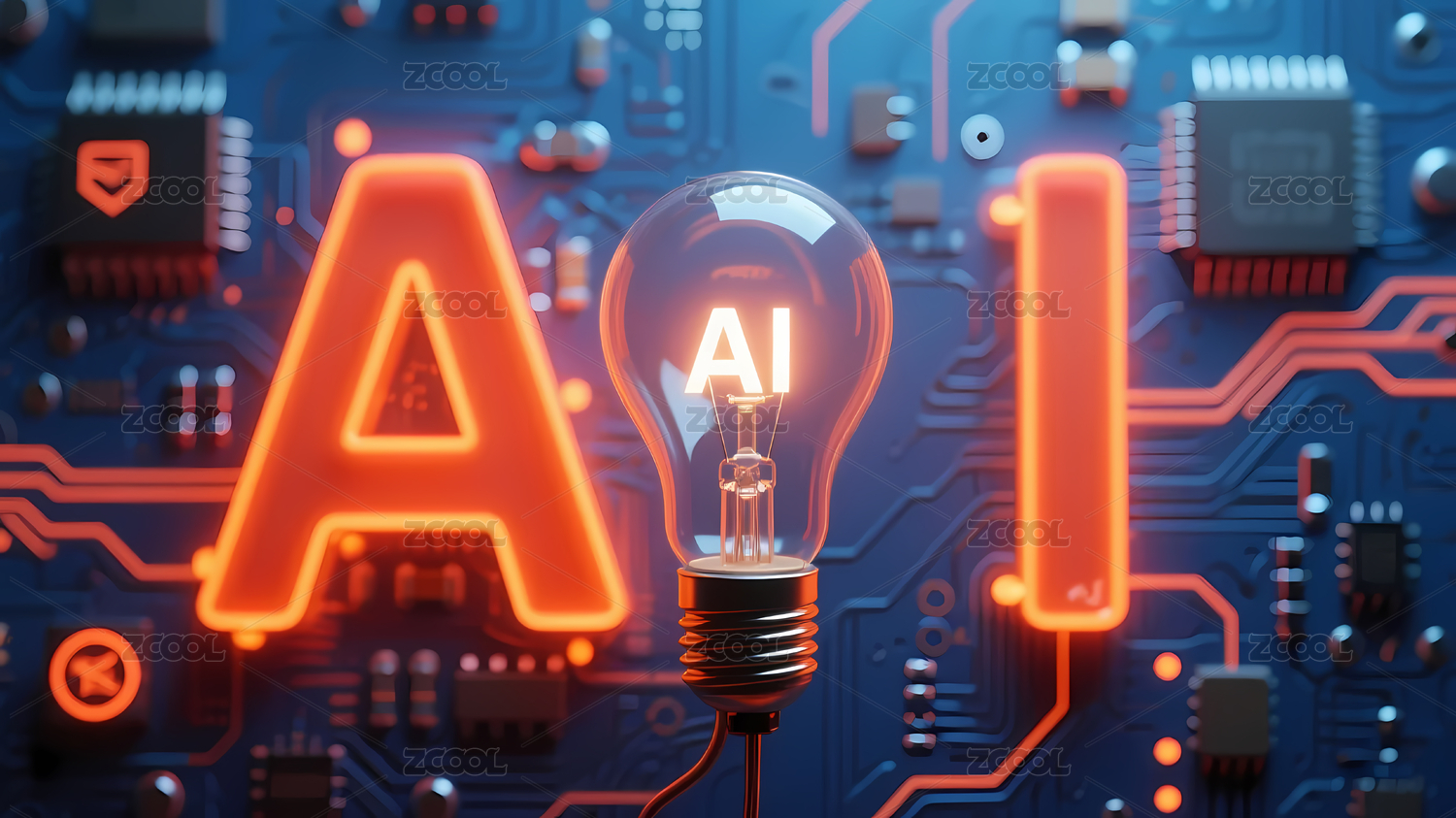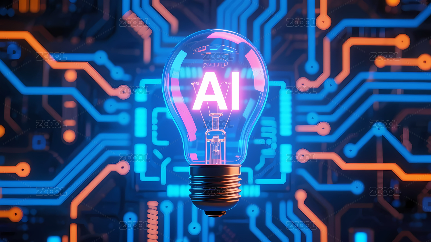 蓝色,背景,科技,图案,橙色,发光,物体,灯泡,AI,电路