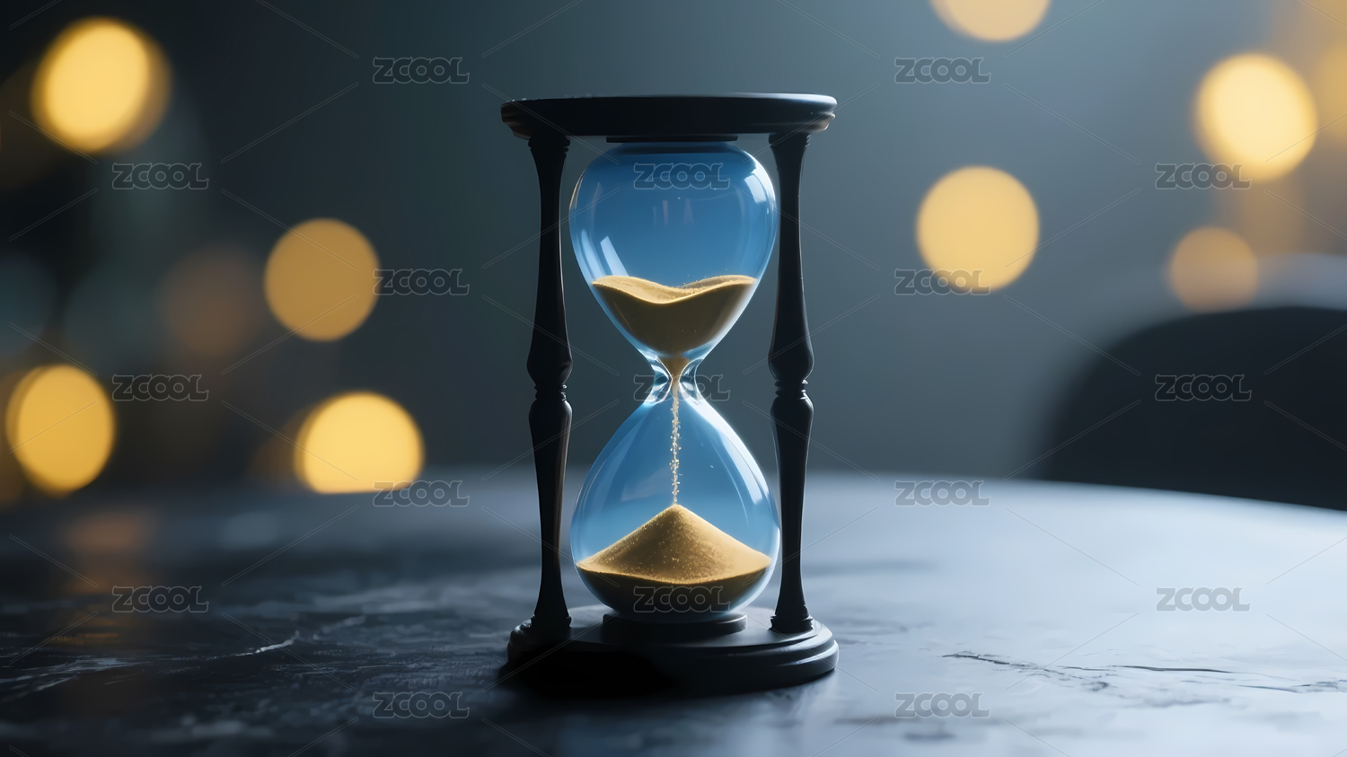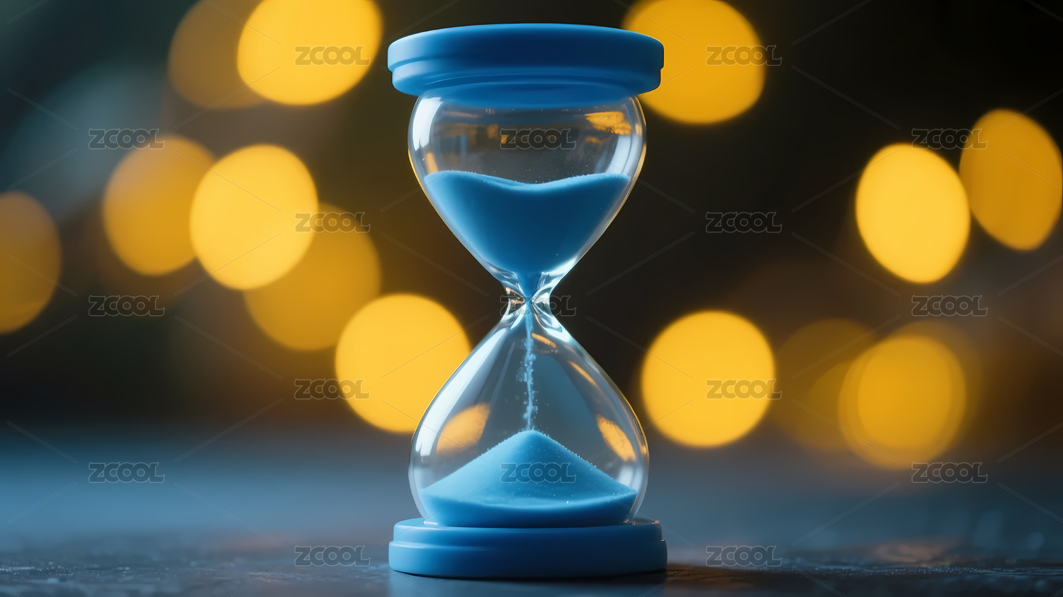 蓝色,背景,模糊,黄色,温暖,沙漏,光斑,沙子,流动,倒计时