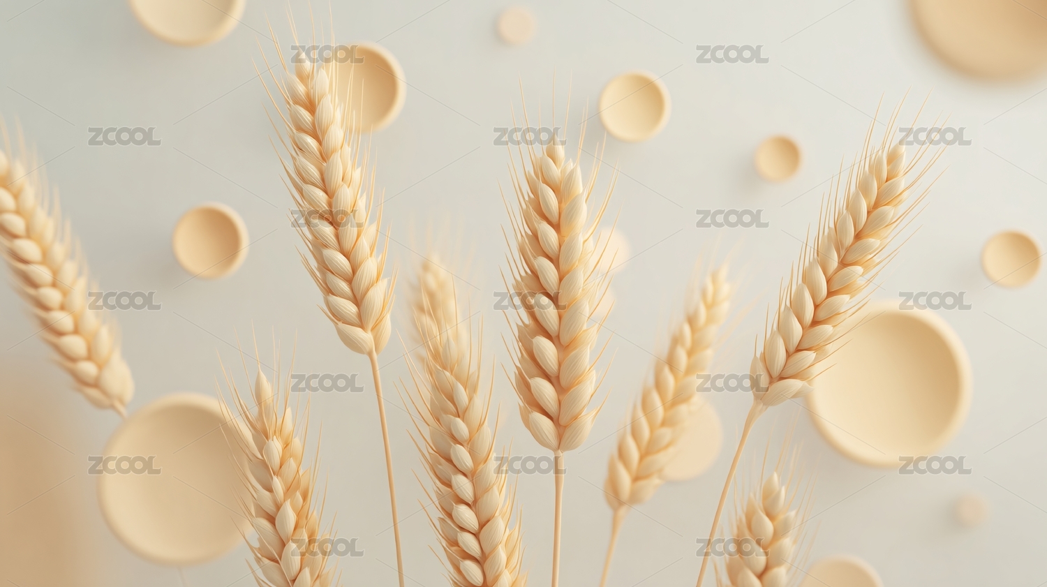 背景,自然,麦穗,金黄,透明,浅蓝,包围,清新,水滴,球体